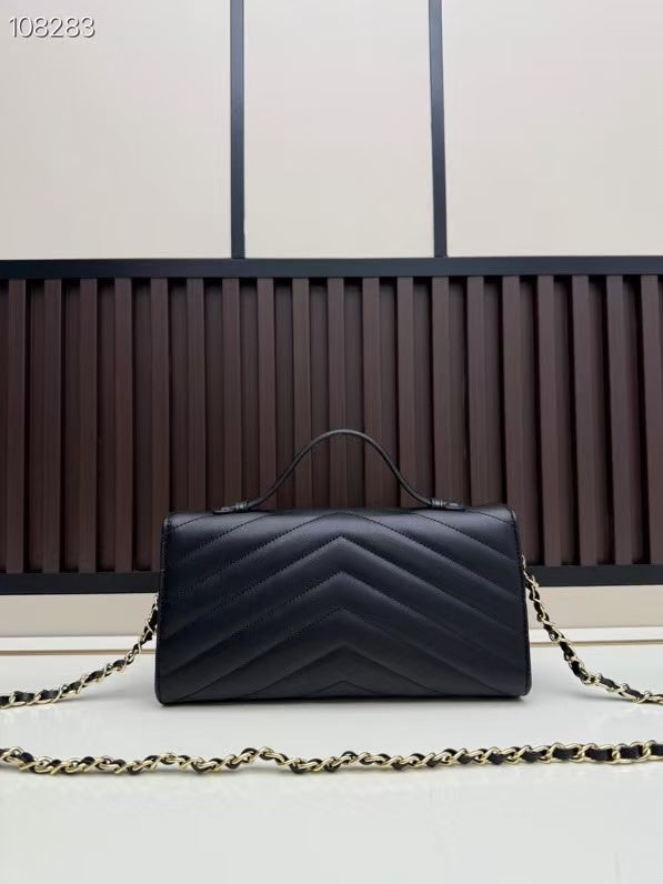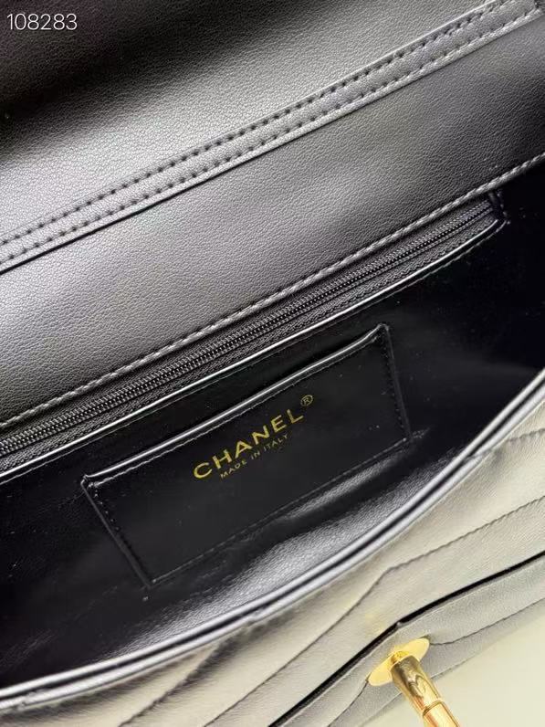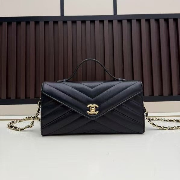 CC Large Flap Bag With Handles Black Goat Leather