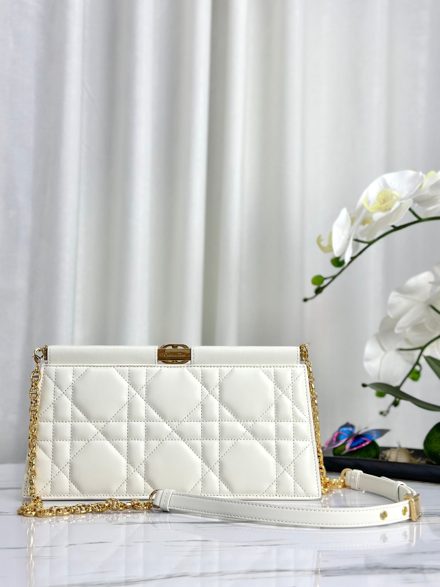 CHAIN CLUTCH 27 BAG IN WHITE LAMBSKIN