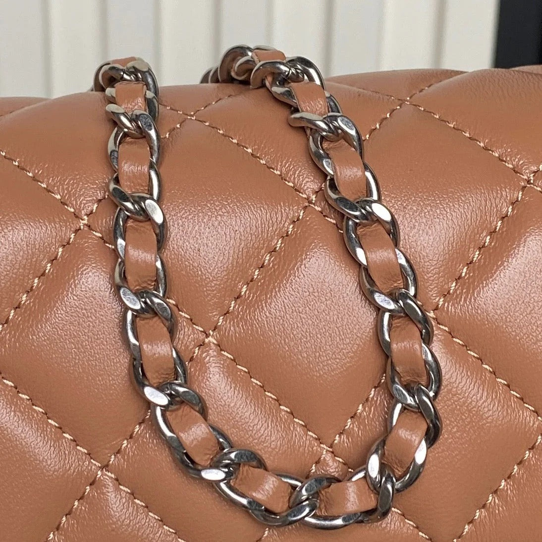CHANEL 25S FLAP BAG 20 IN DARK CARAMEL CALFSKIN SILVER HARDWARE
