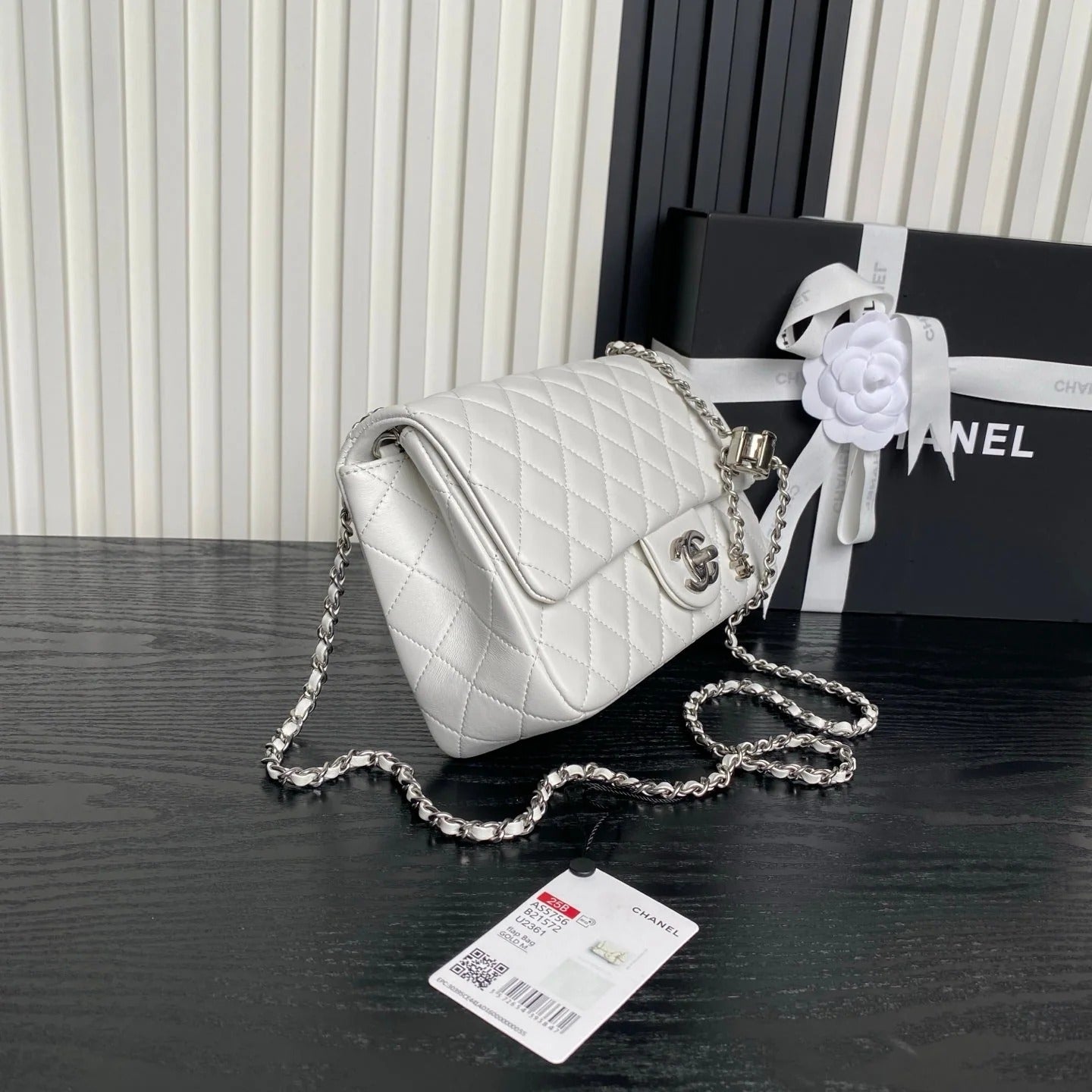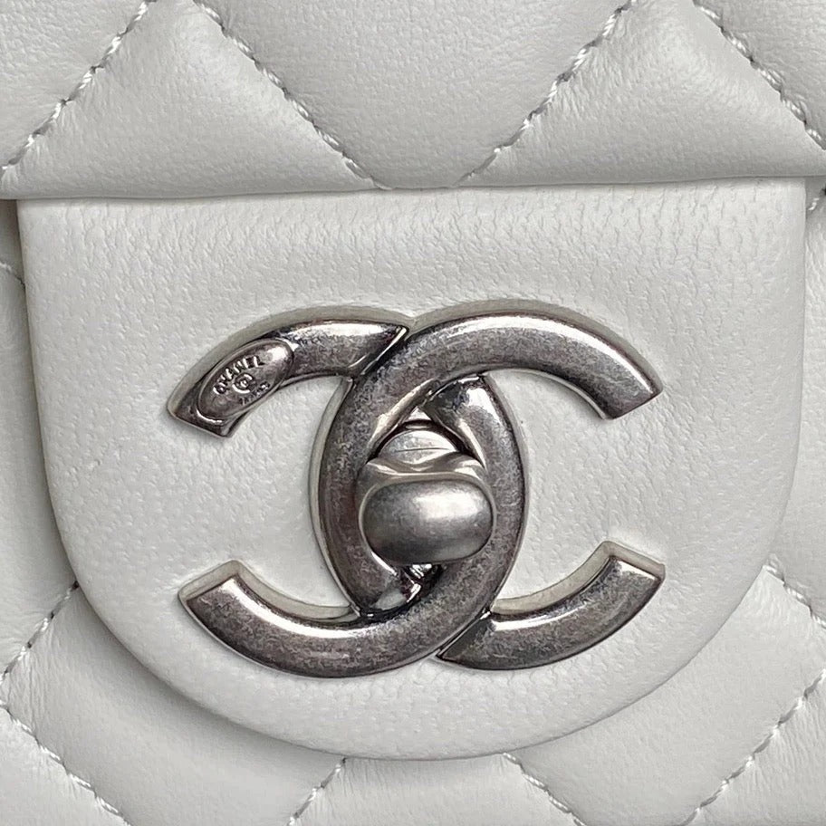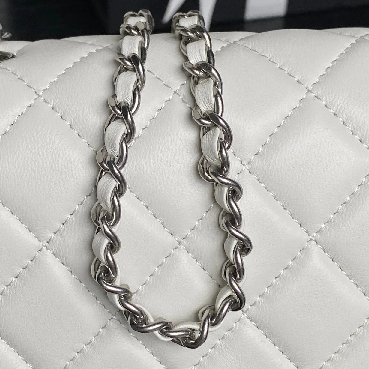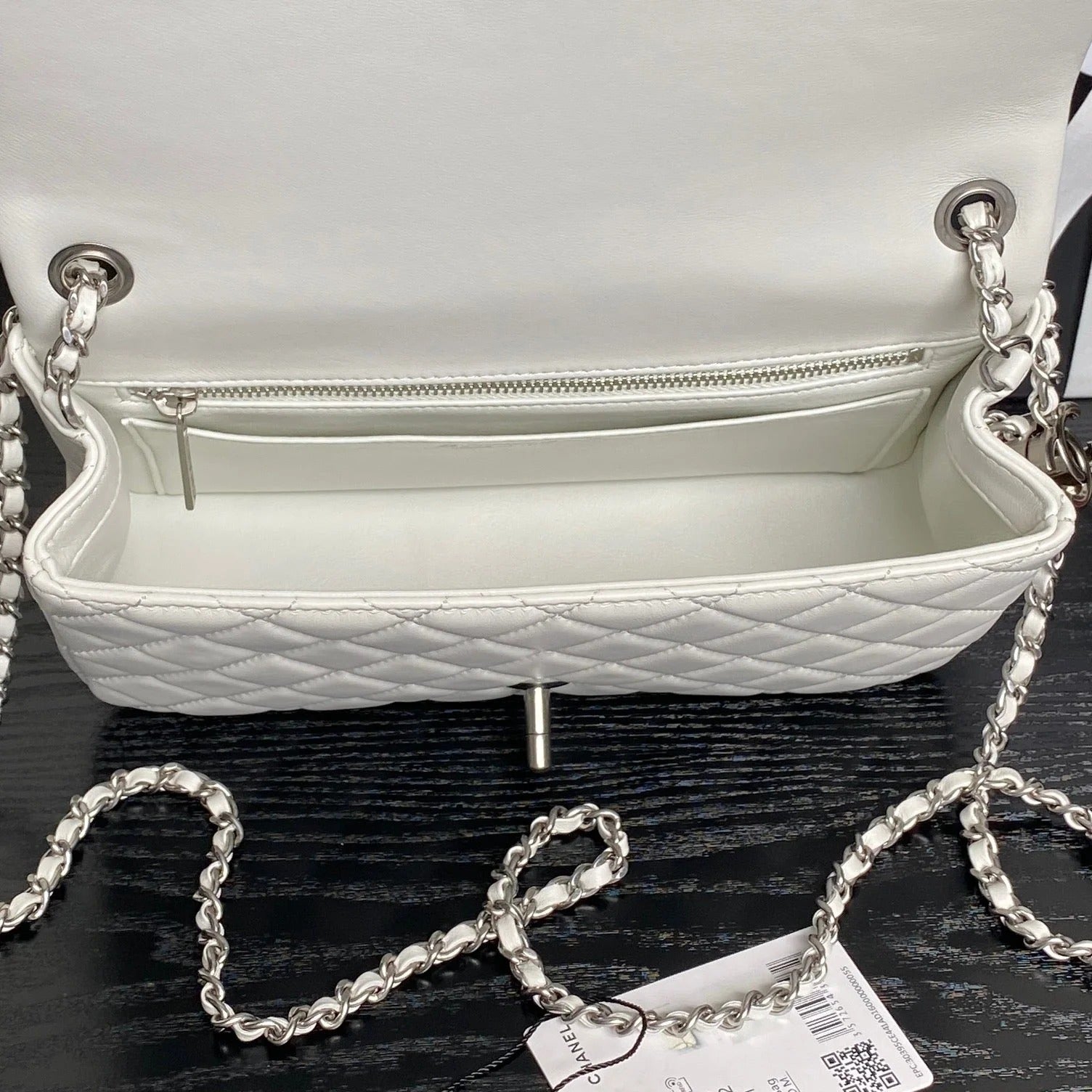 CHANEL 25S FLAP BAG 23 IN WHITE CALFSKIN SILVER HARDWARE