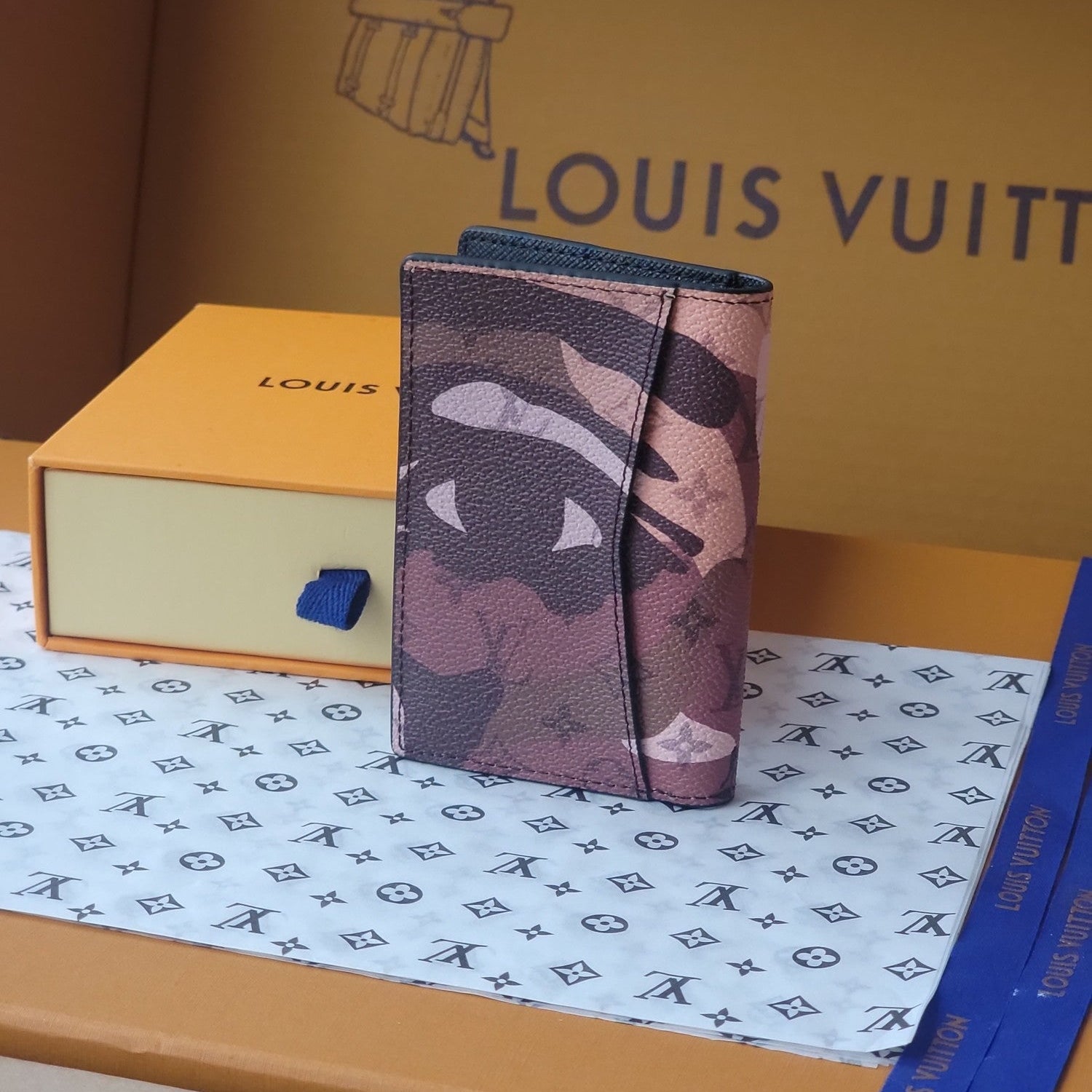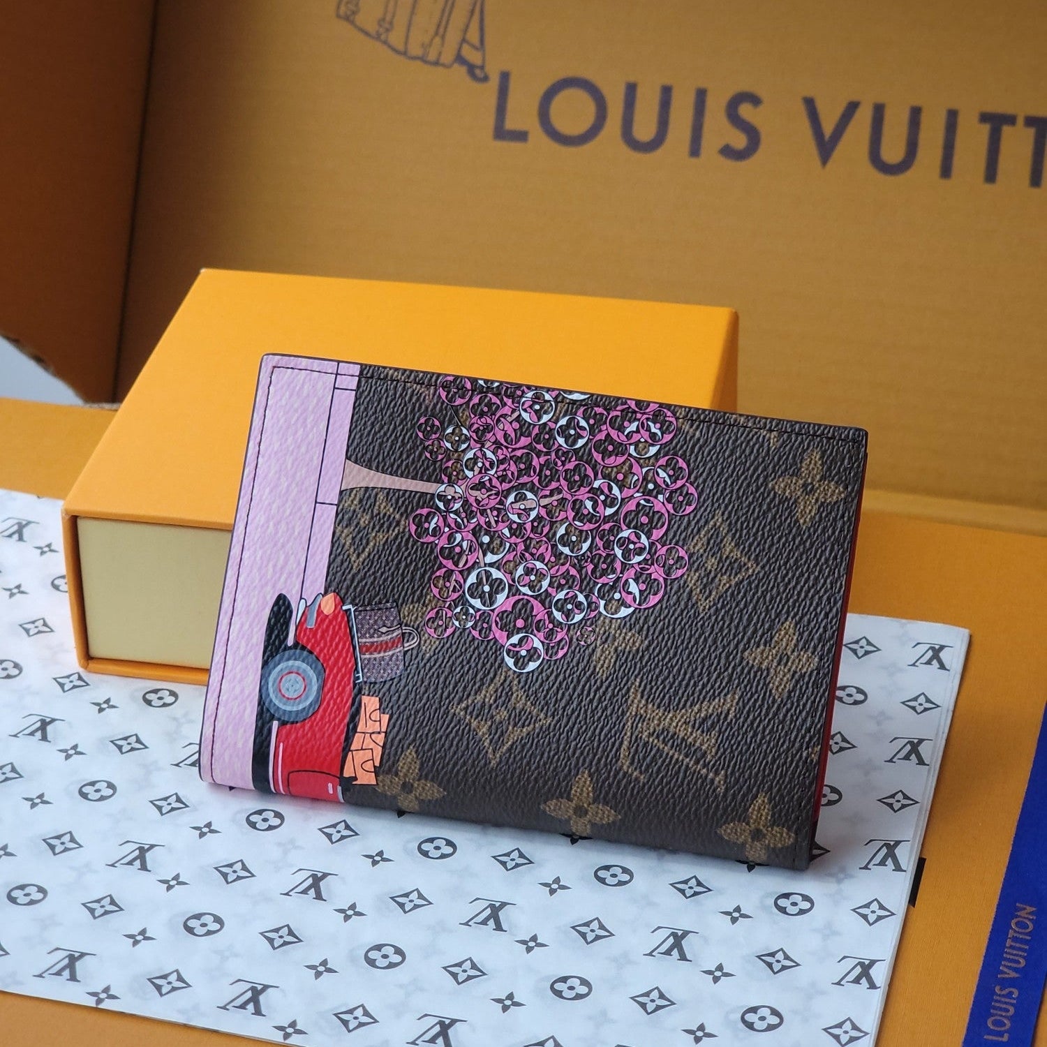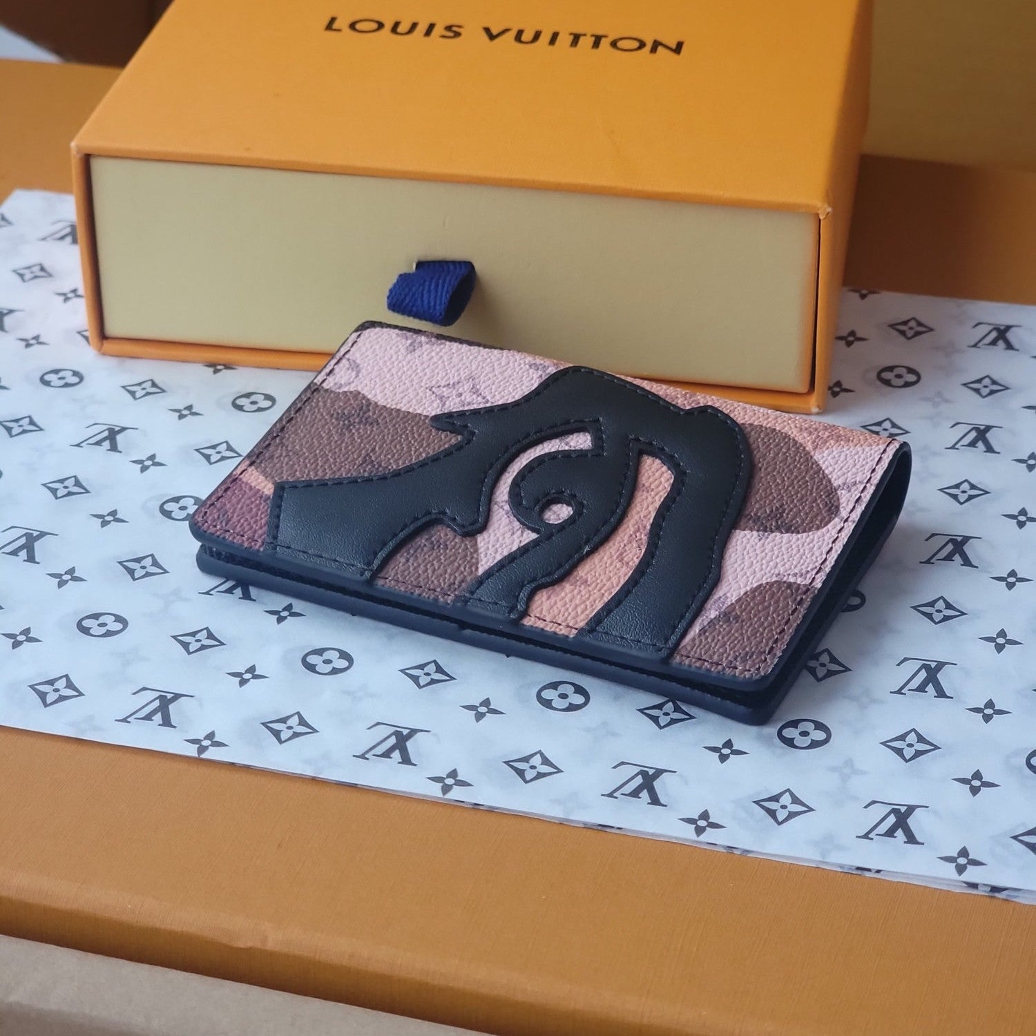 CHARM CARD HOLDER BROWN PINK MONOGRAM CANVAS