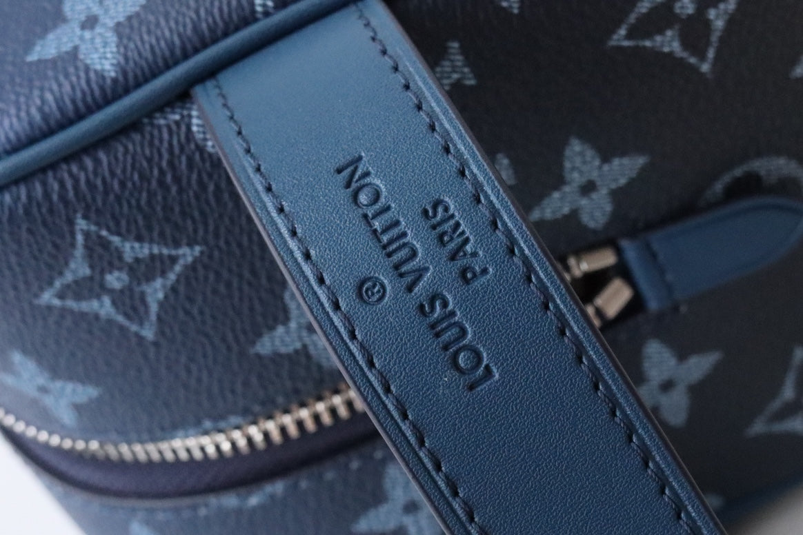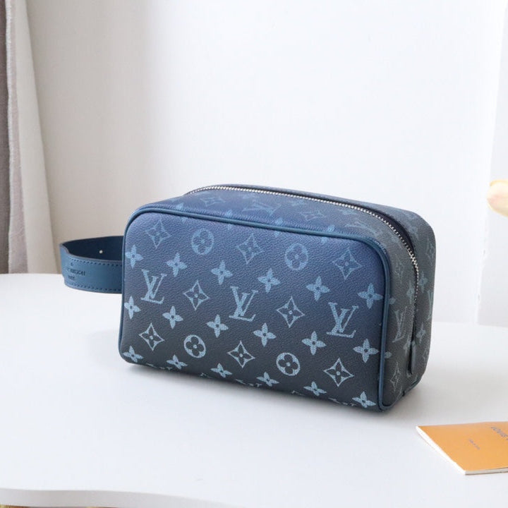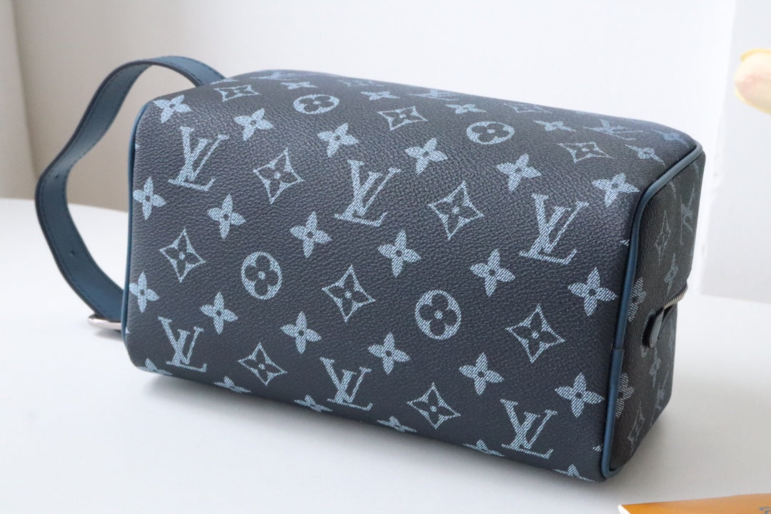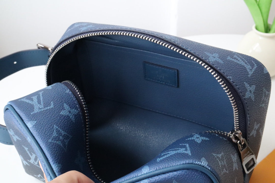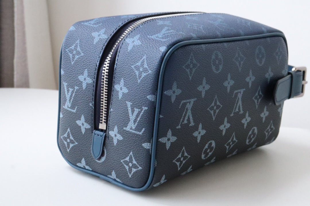 LV Locker Dopp Kit Khaki Blue Monogram Canvas 224139