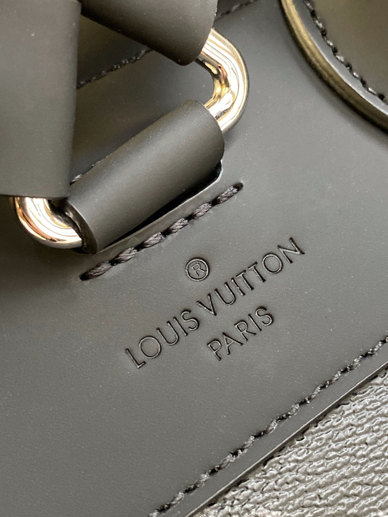 STEAMER BACKPACK 45 IN GUN METAL MONOGRAM ECLIPSE CANVAS AND BLACK CALFSKIN SILVER BUCKLE