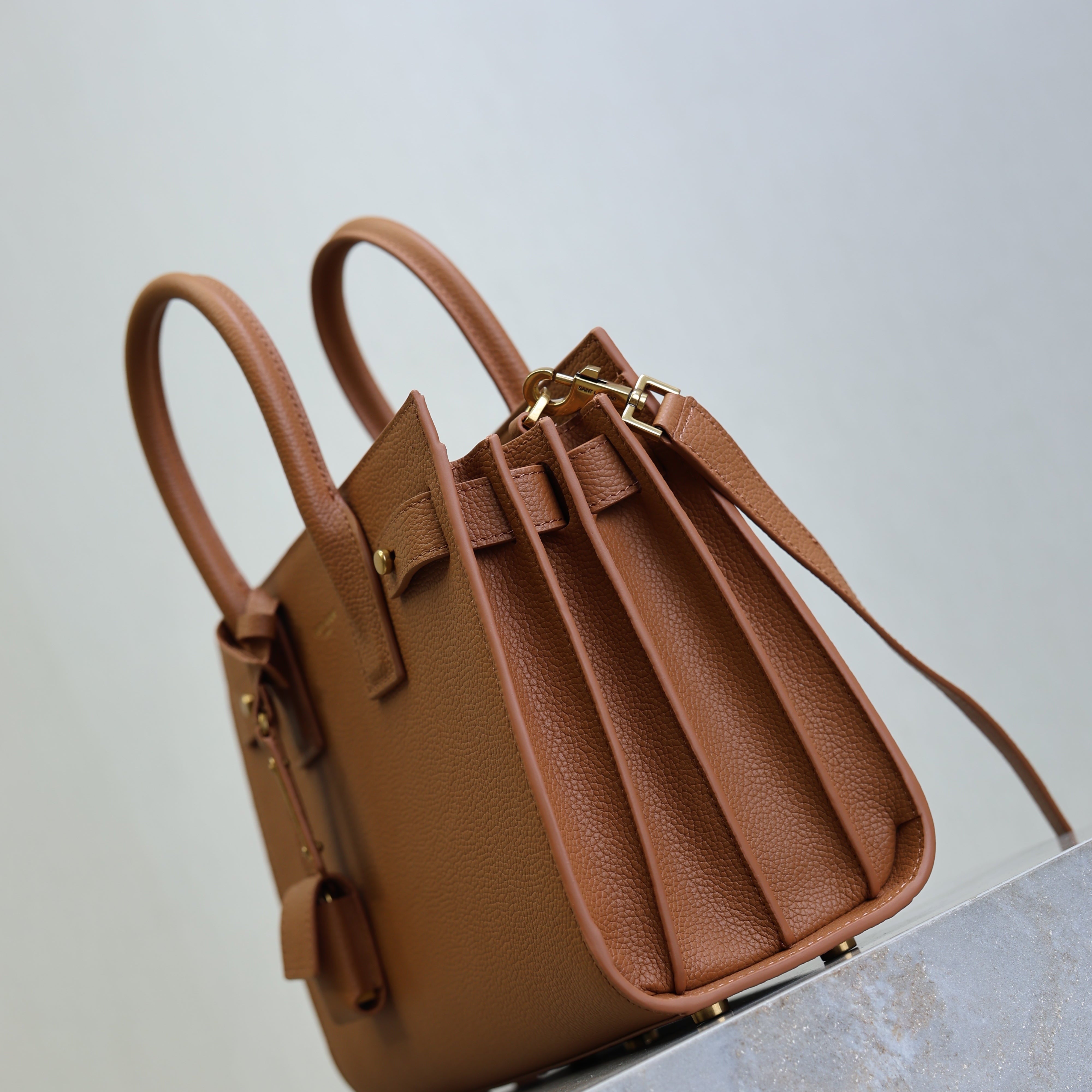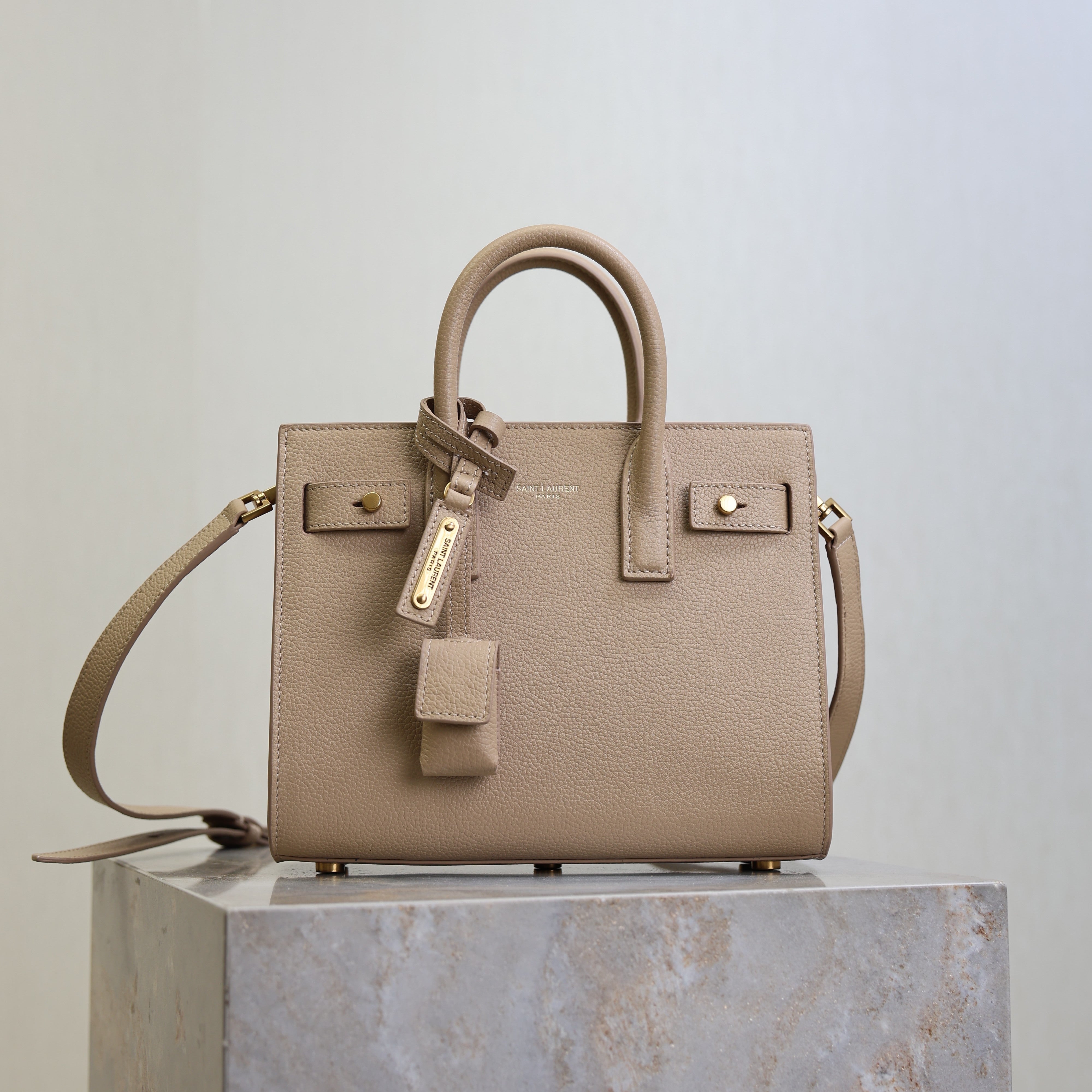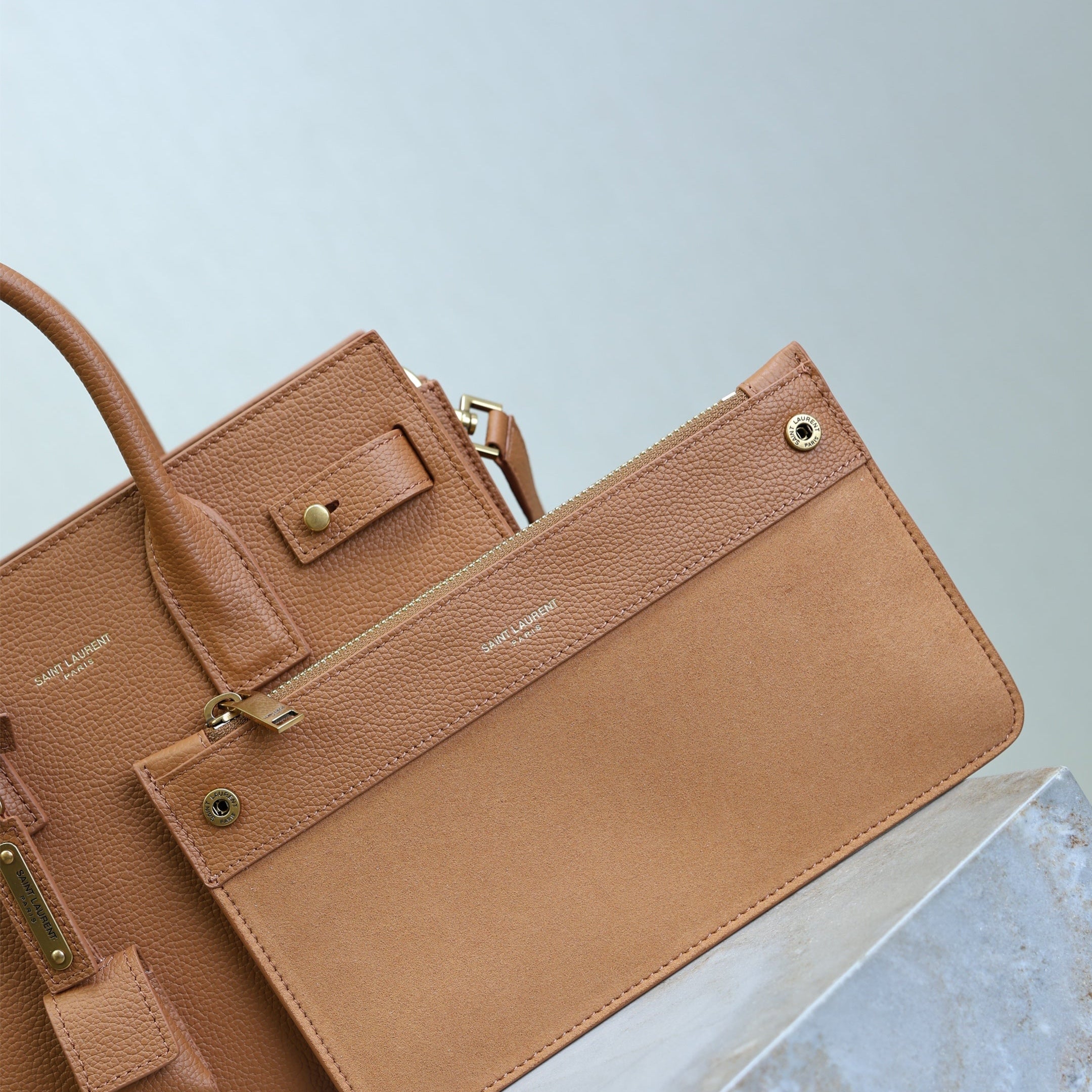 YSL OXALIS 37CM BEIGE RAFFIA TAN CALFSKIN