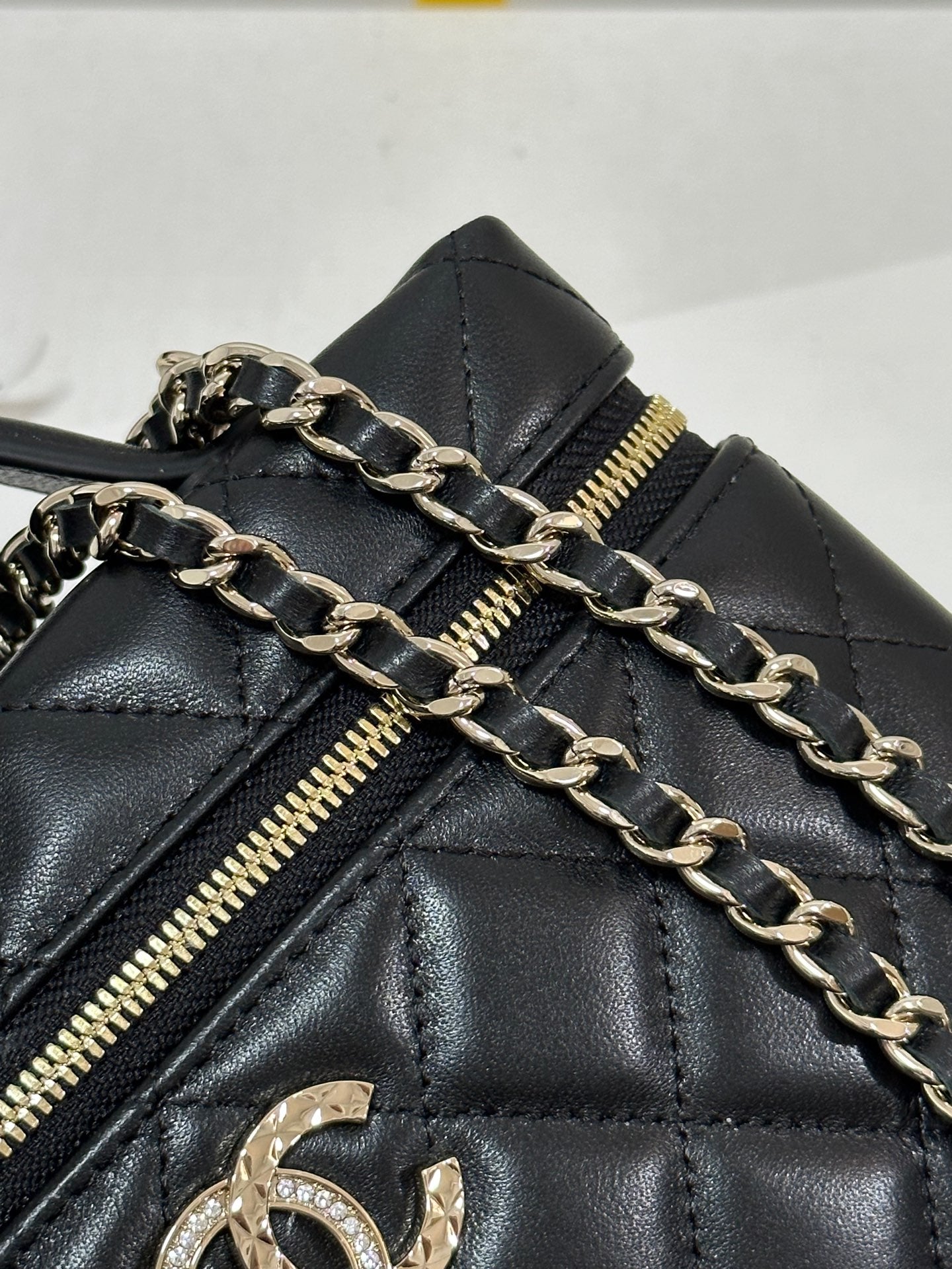 CC 25C Vanity Case 19.5cm Black Hanel Sheepskin Light Gold Hardware