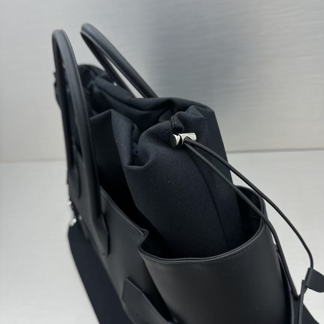 The Row Margaux 17 Inside Out Black Canvas & Leather