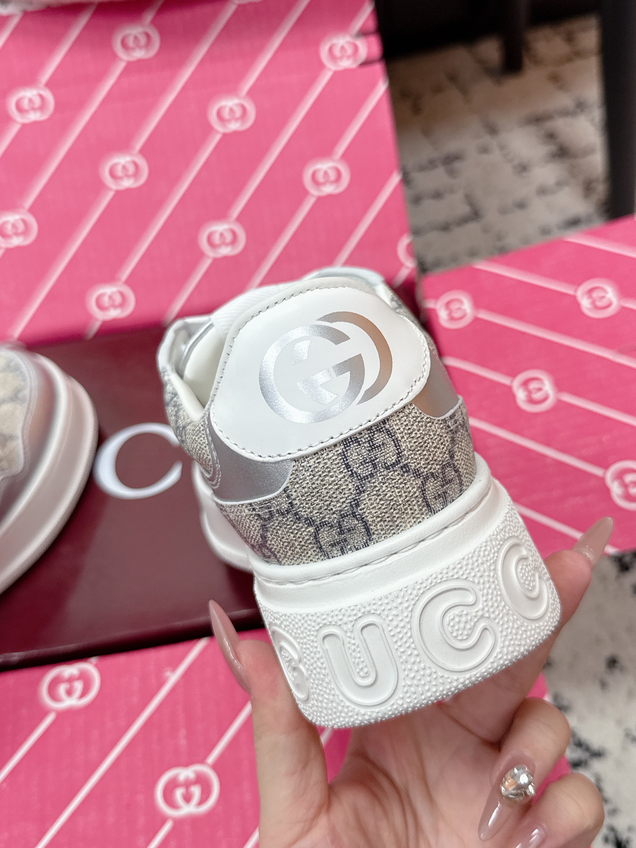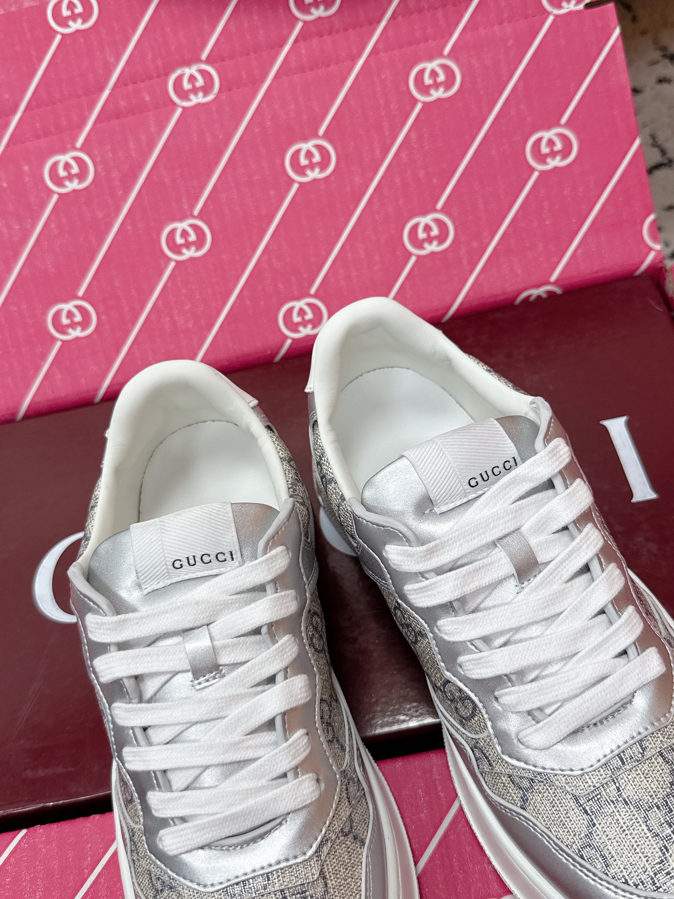 GG Men's Chunky Sneaker Sliver White Leather Canvas 617506