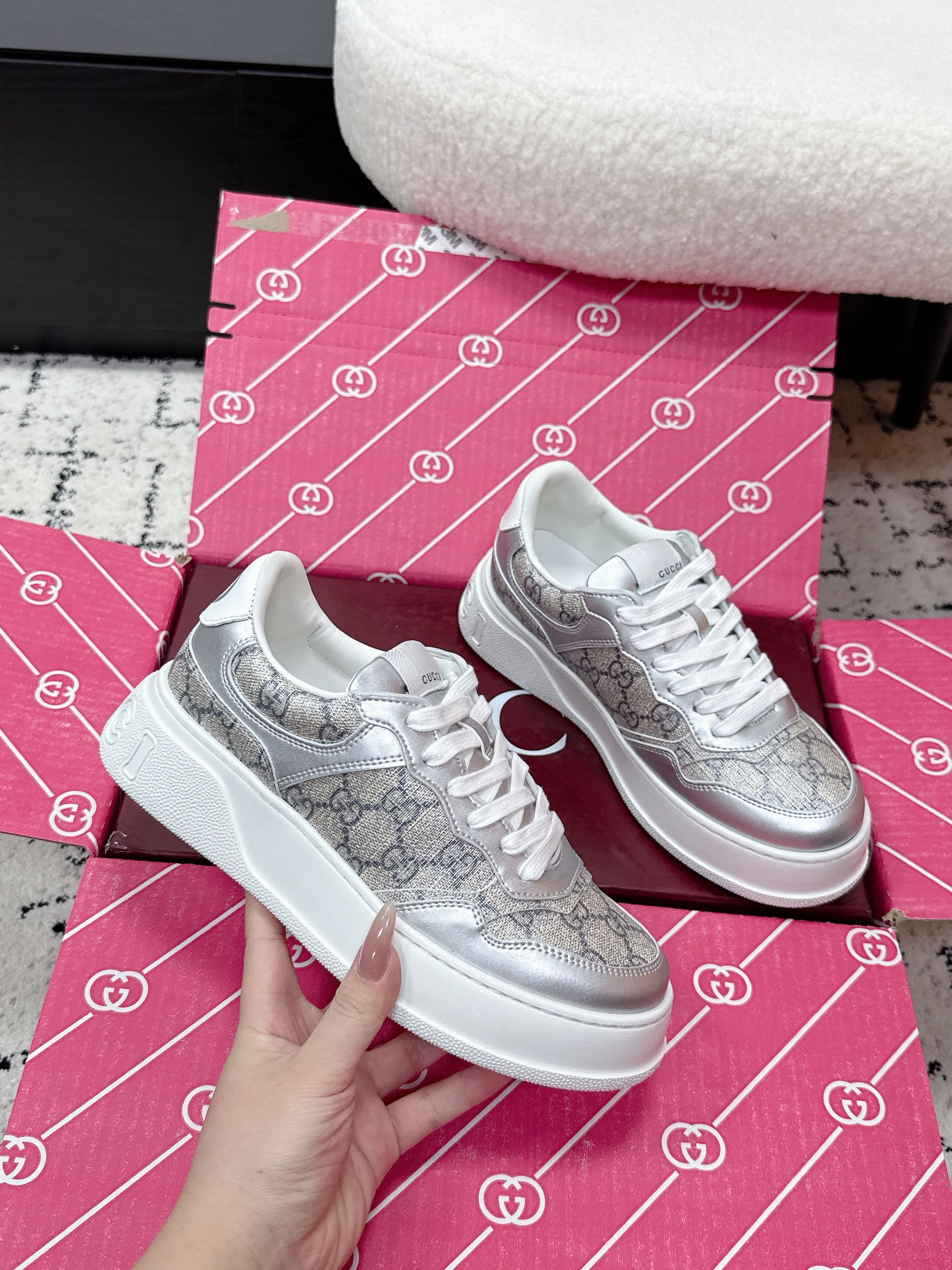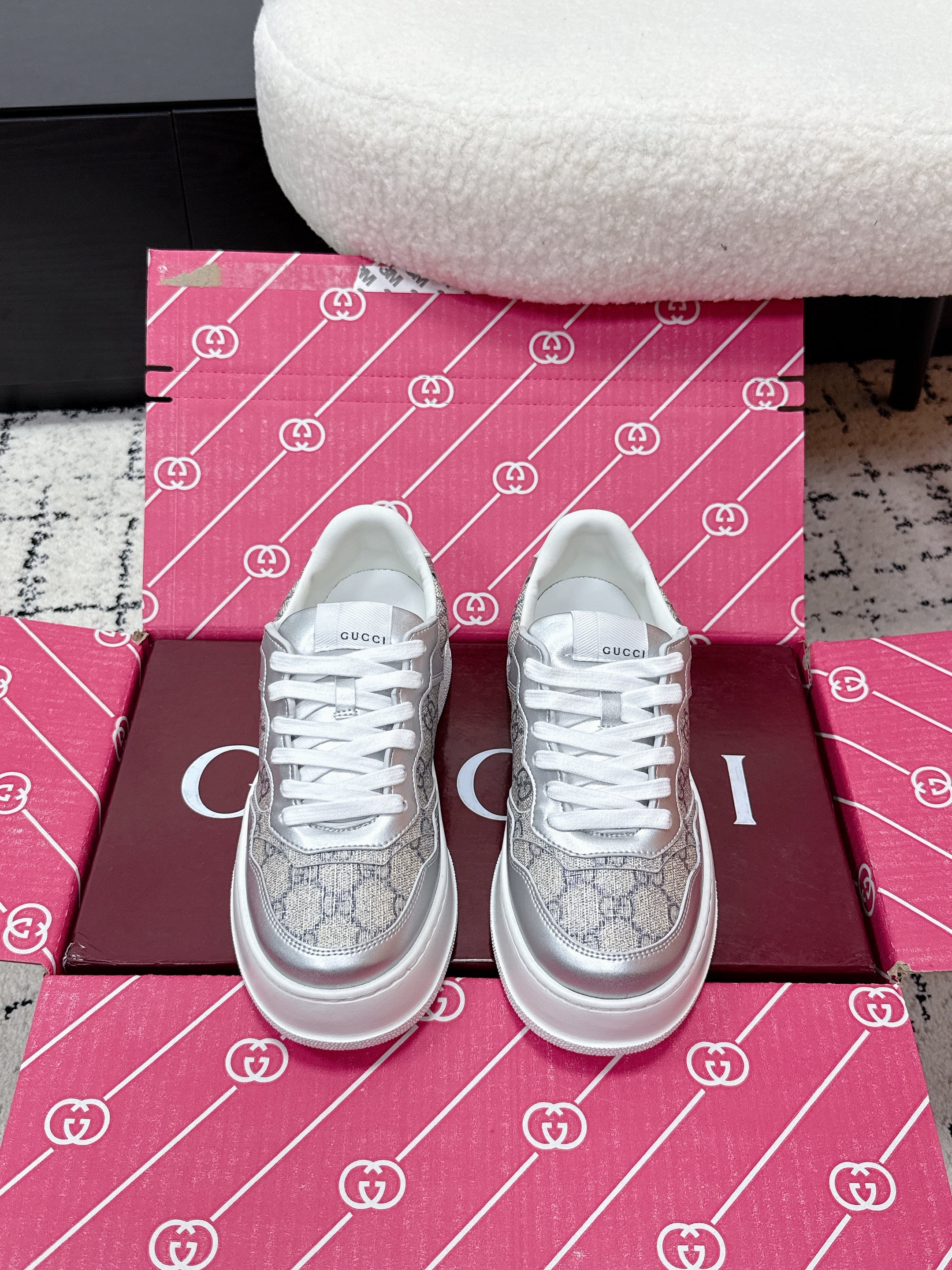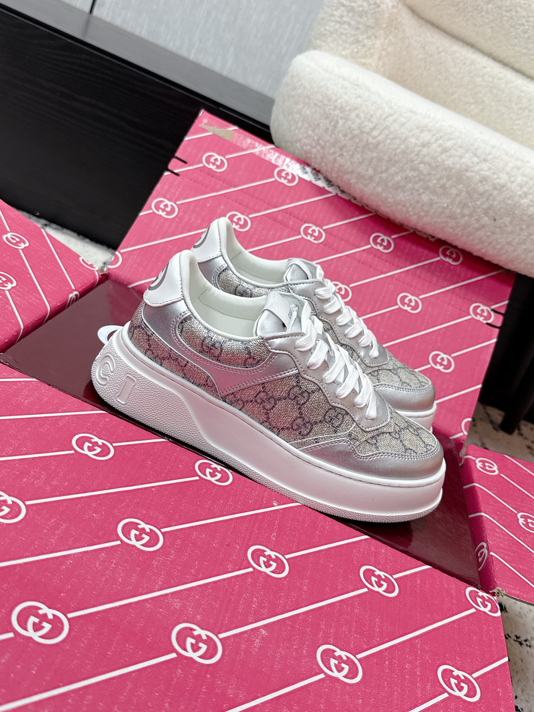 GG Chunky Trainers White Leather 543411