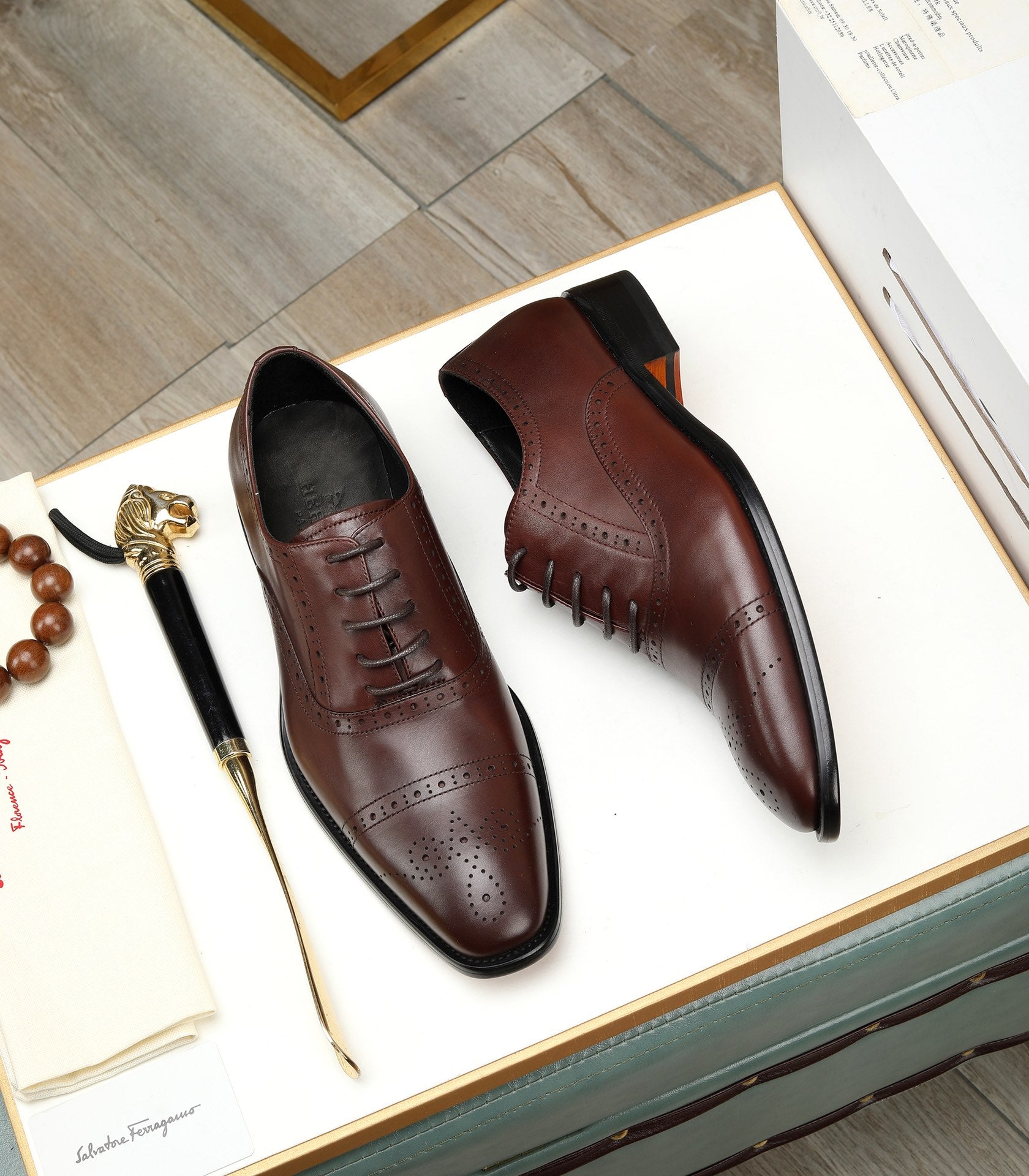 HM OXFORD LACE-UP RUSSET WITH PATTERN CALFSKIN