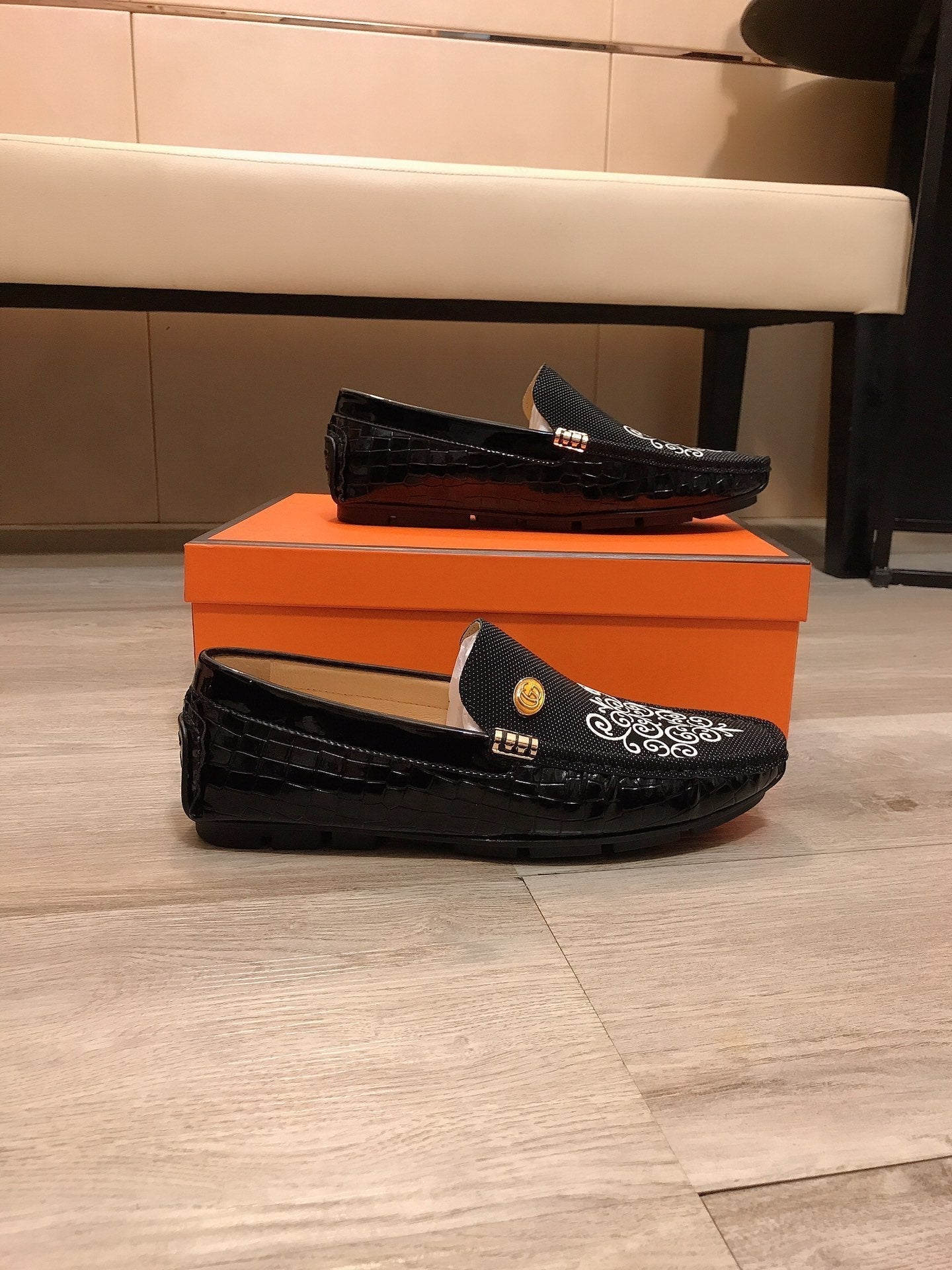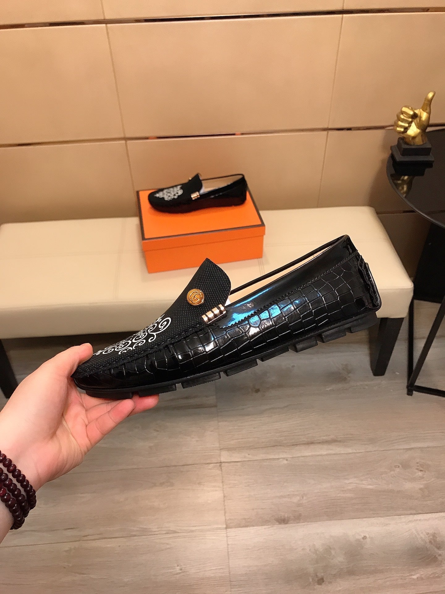 GG CROCODILE BLACK LOAFERS