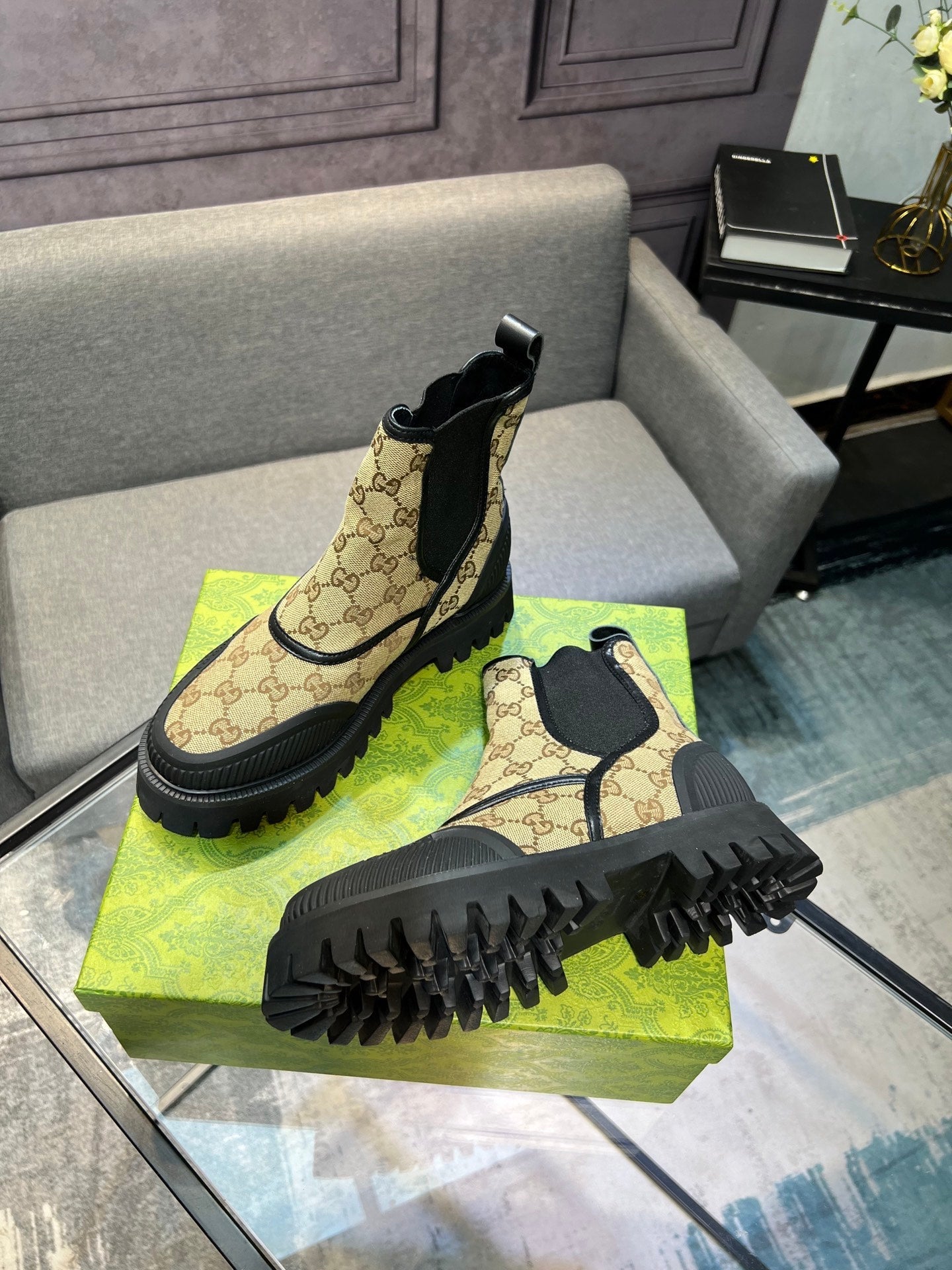 GG Men's 25 Chelsea Boots Black Brown Canvas 720789