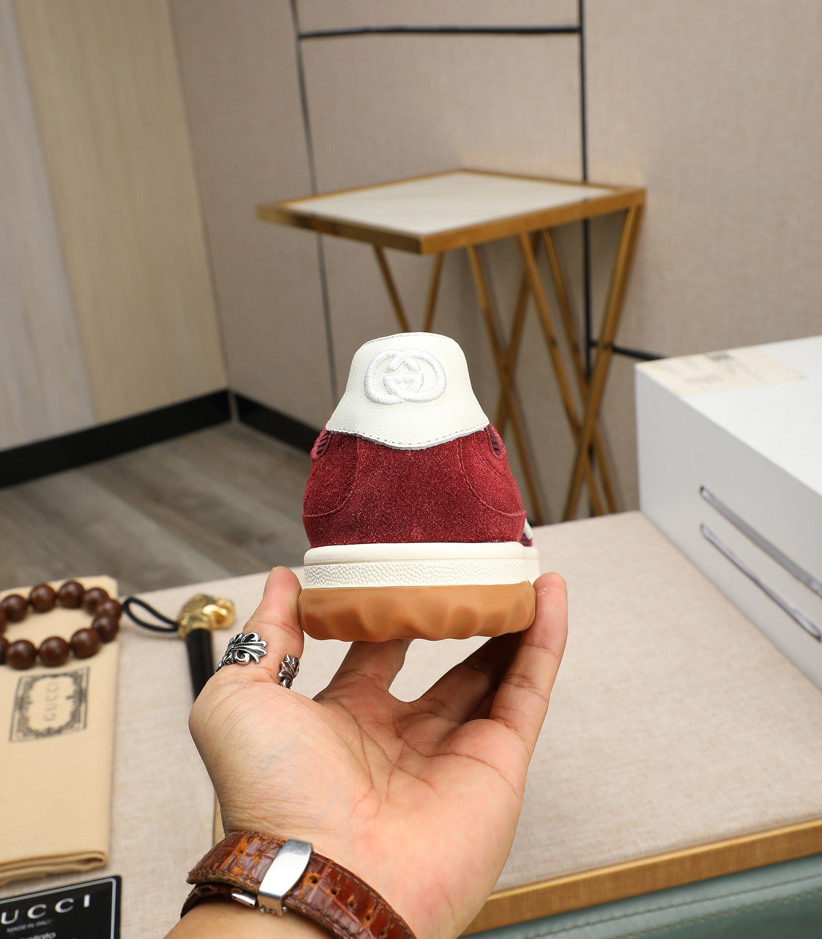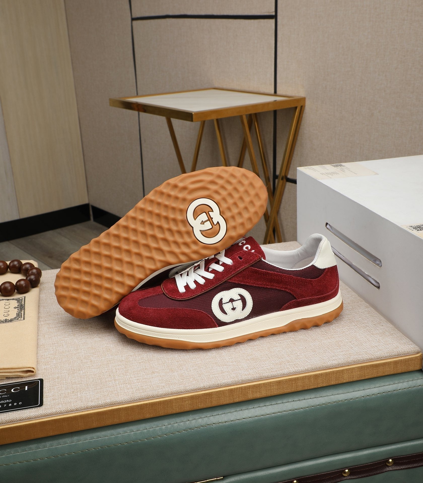 GG Men's G75 Sneaker Red Mesh Suede 270521