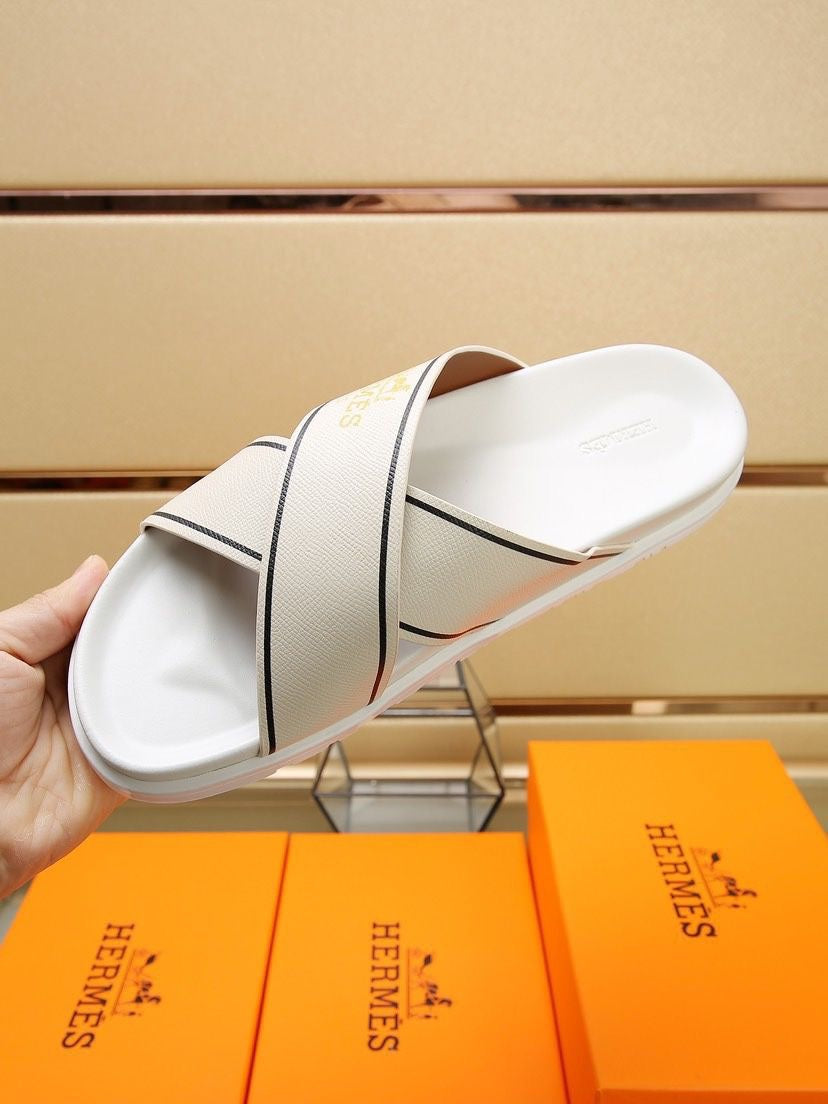 HM Men's Cross Strap Slide Beige Cowhide 544097