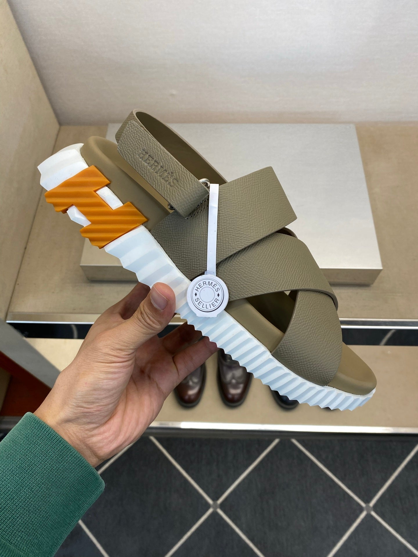 HM Men's Electric Sandals Moss Green Calfskin 602595