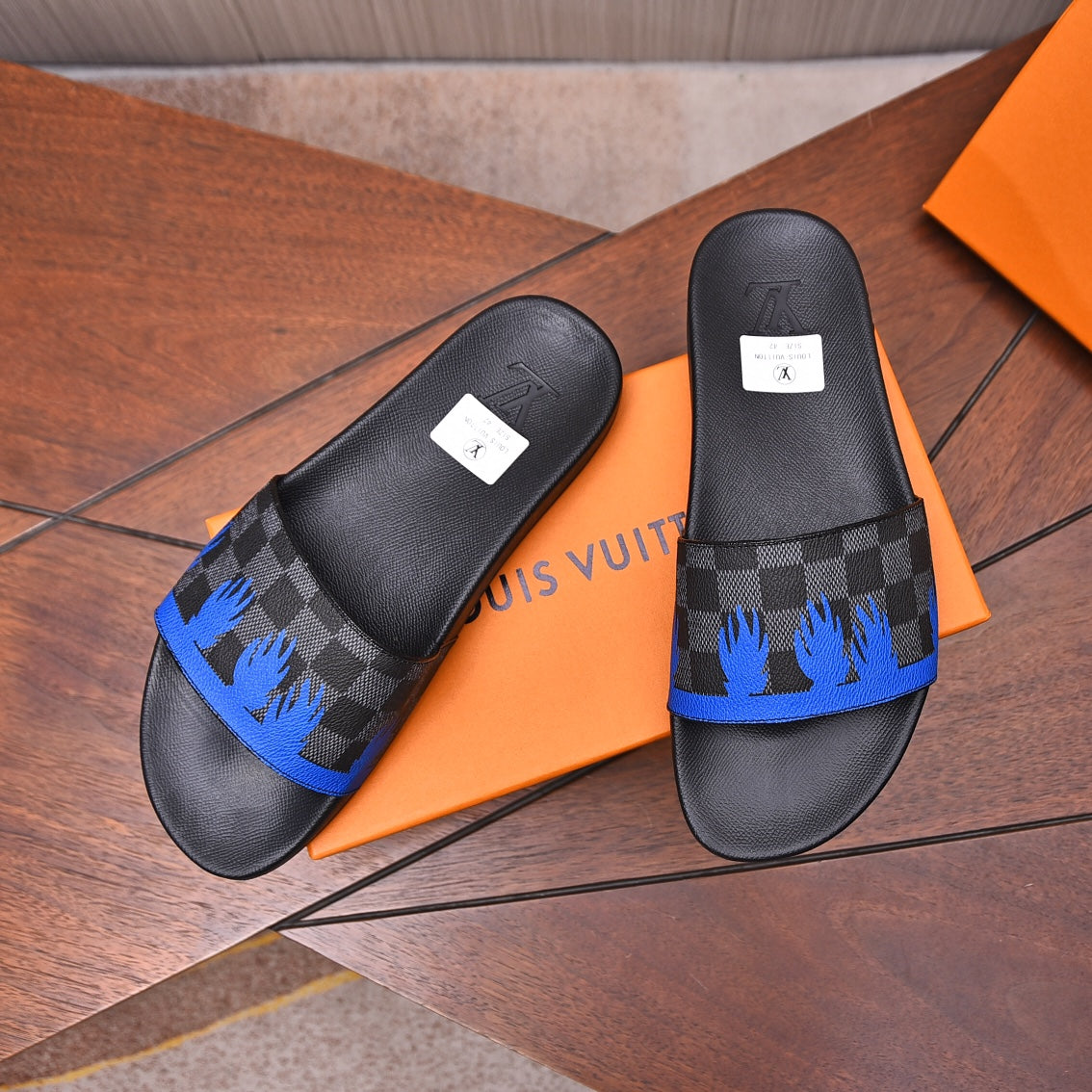 LV MULE SANDAL BLACK MIX BLUE DAMIER CALFSKIN
