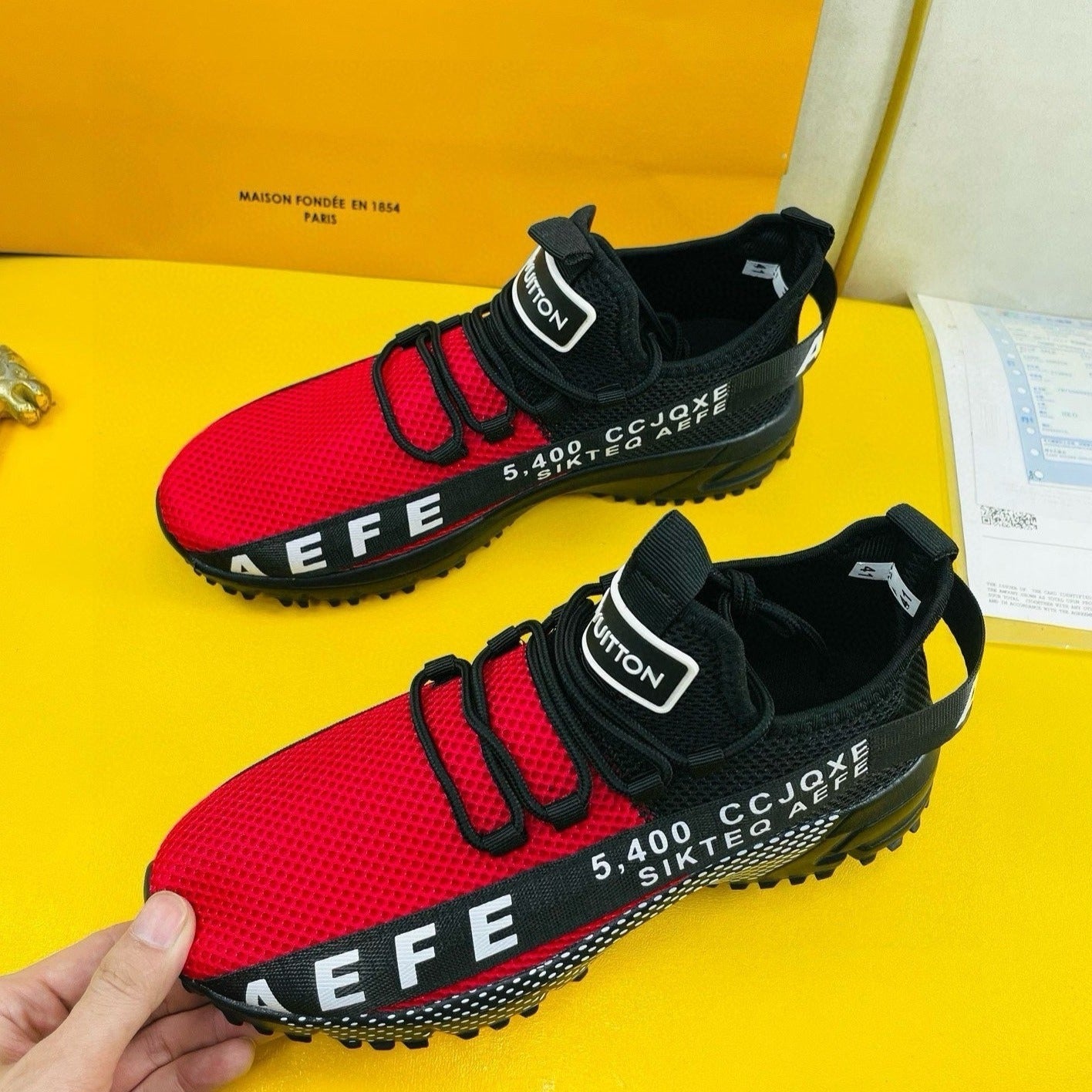 LV SNEAKER IN BLACK MIX RED BREATHABLE MESH FABRIC