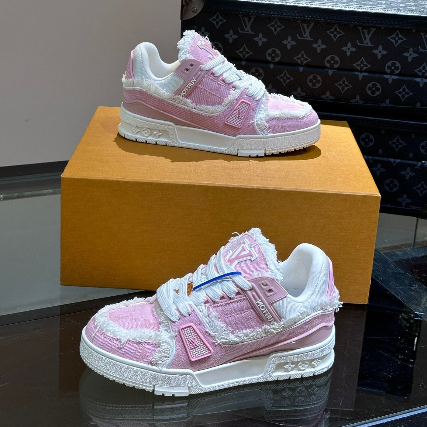 LV TRAINER SNEAKER LIGHT PINK FABRIC AND SUEDE