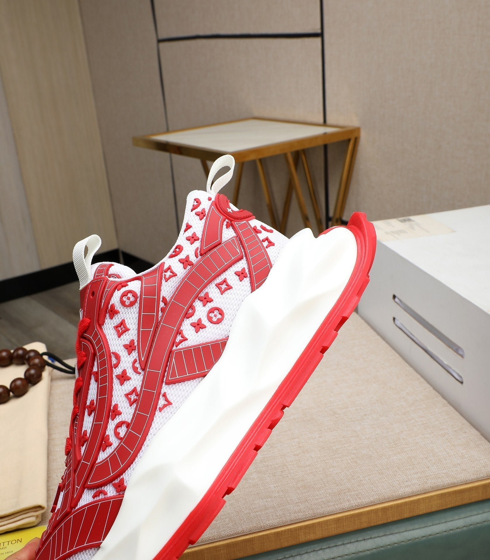 LV TRAINER WHITE MIX RED CALFSKIN AND BREATHABLE MESH