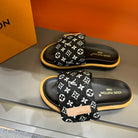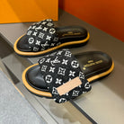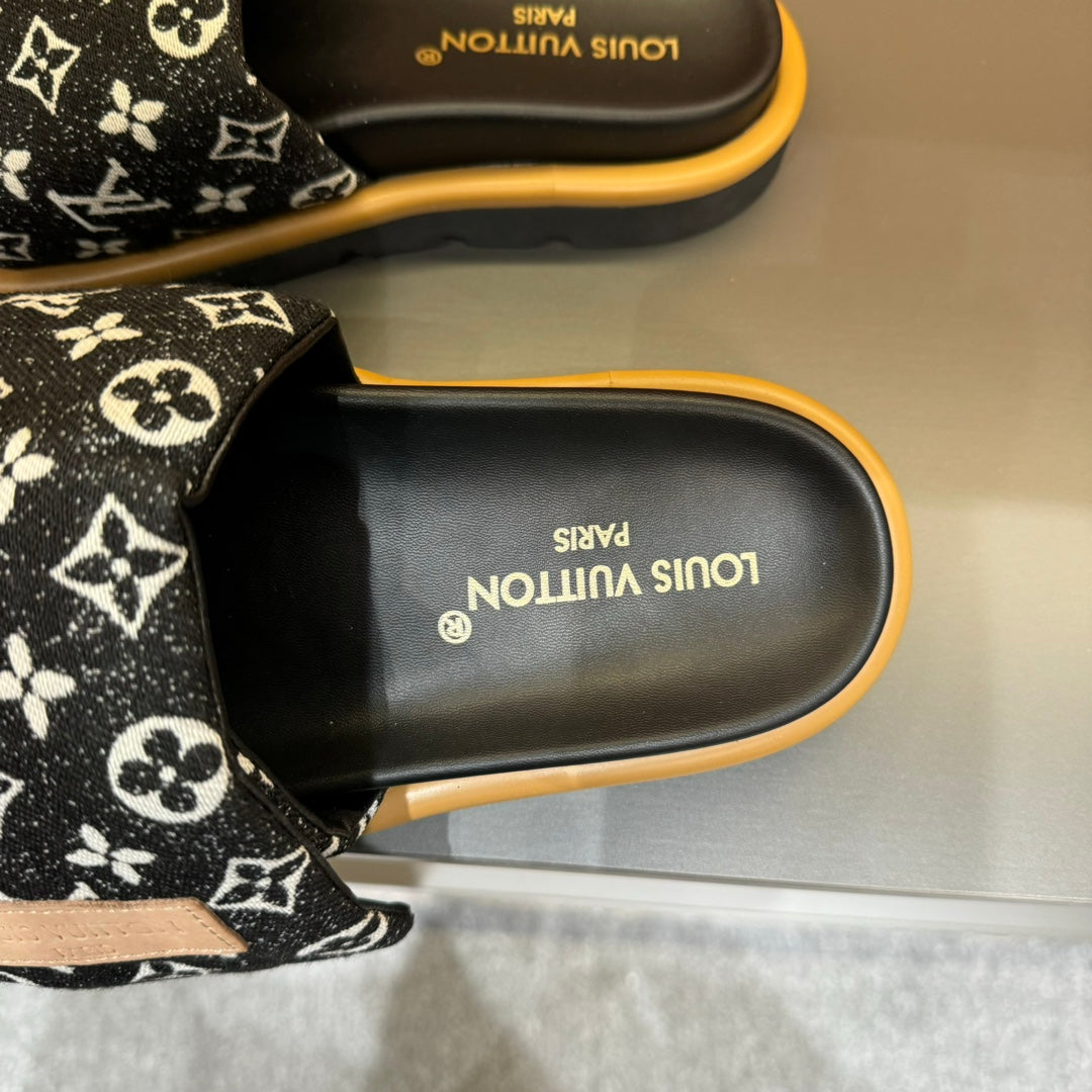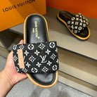 LV VELCRO SLIPPERS IN BLACK MIX WHITE MONOGRAM JACQUARD