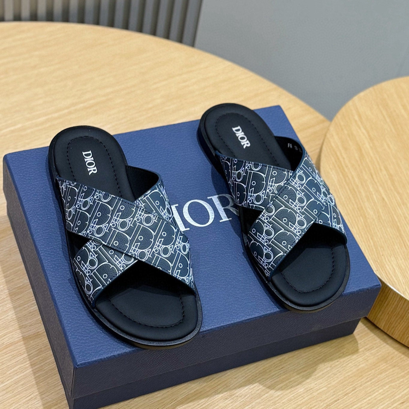 CD Slip on loafer Black Blue Cowhide Fabric 647996