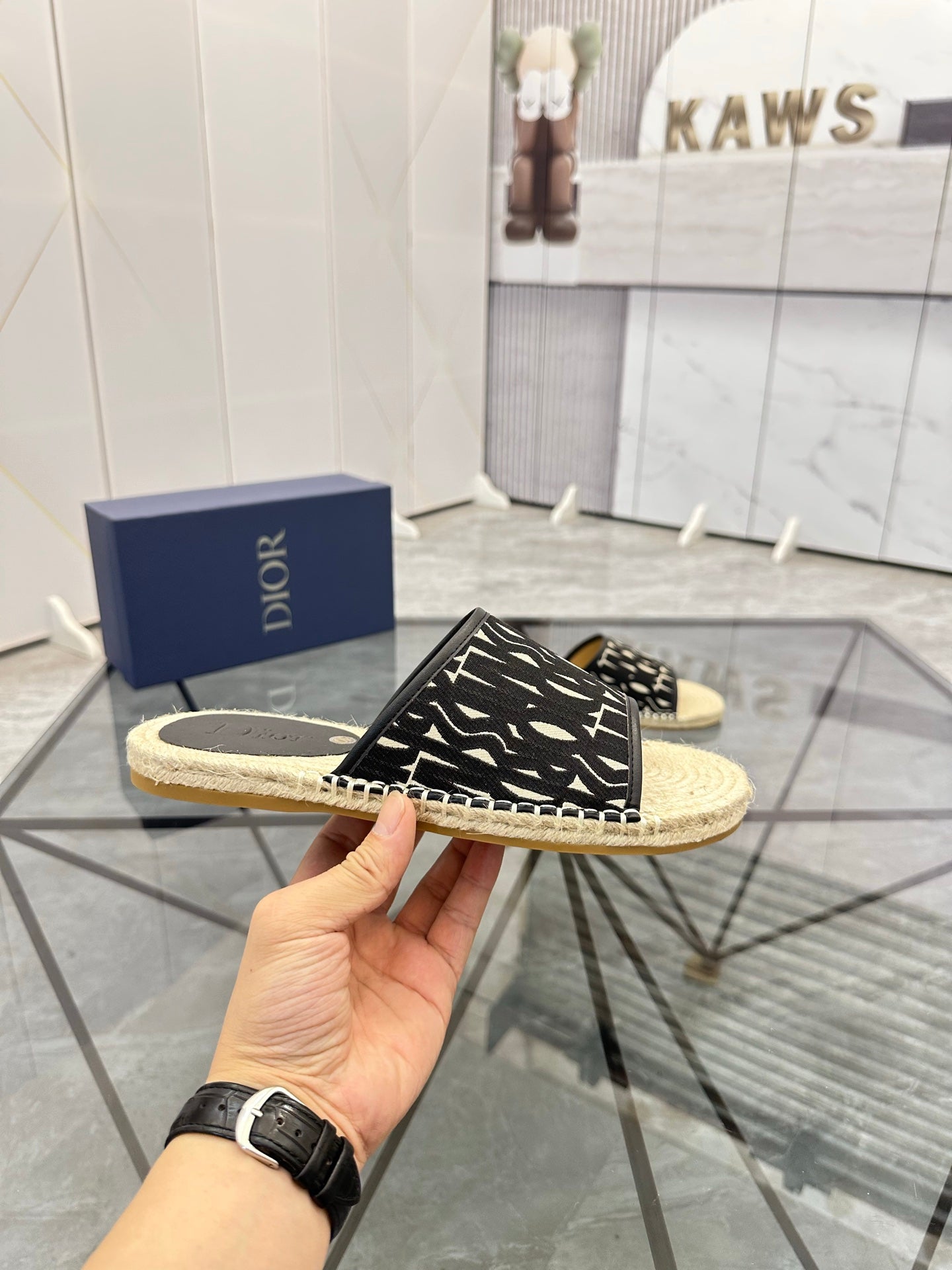 CD Espadrille Slide Black Printed Fabric 639442