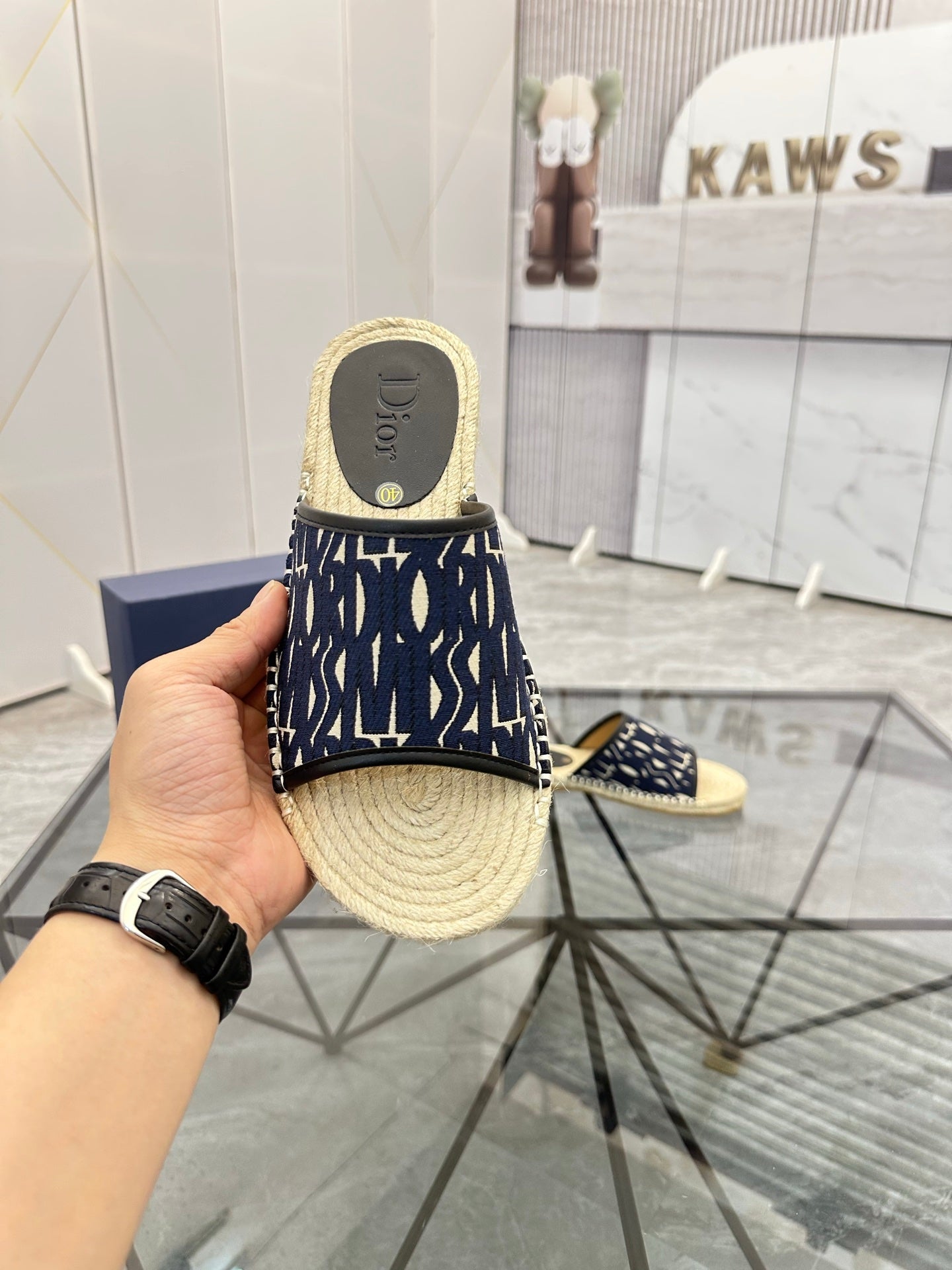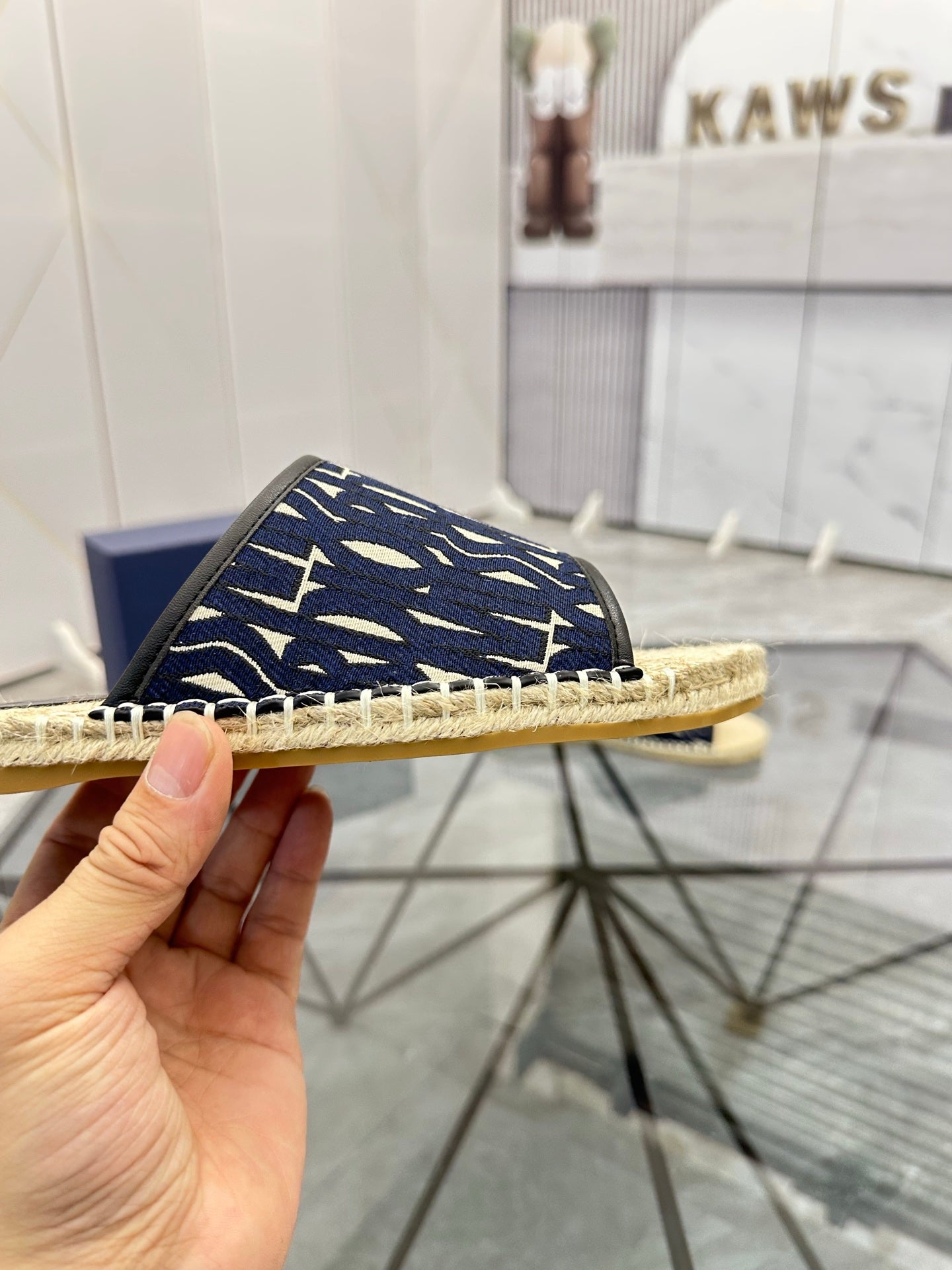 CD Espadrille Slide Navy Blue Printed Fabric 639439