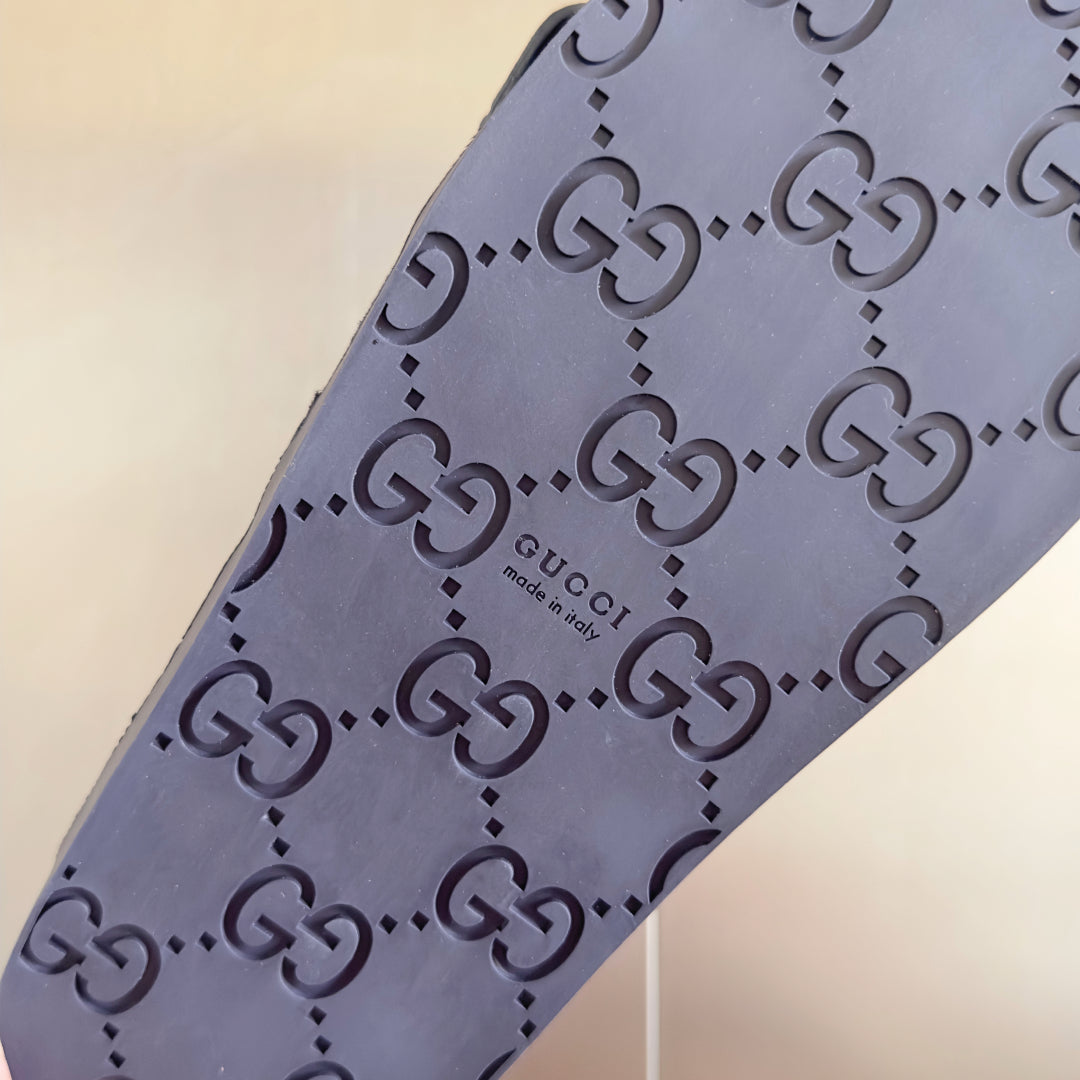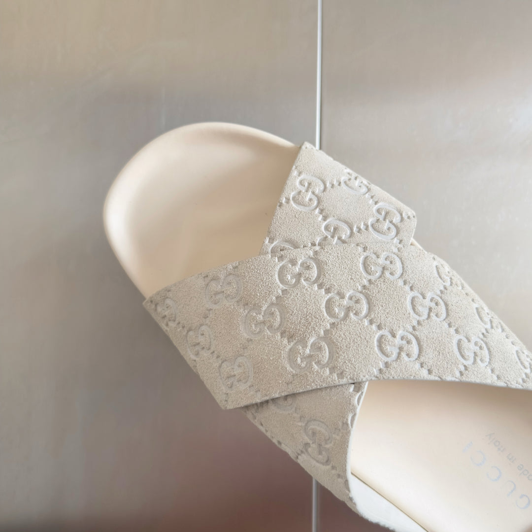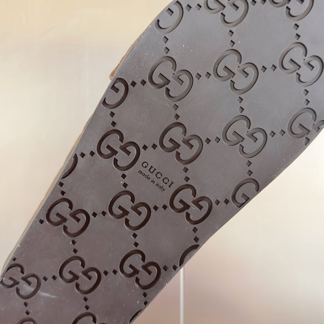GG Men's Sandals Slide Brown Embossed Suede 595716