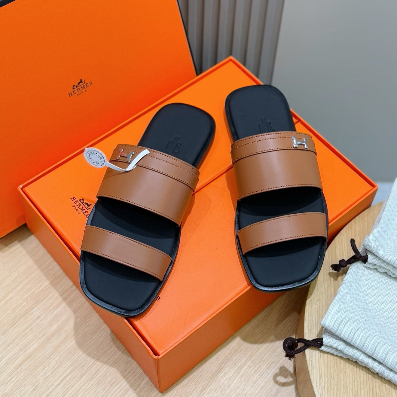 HM Men's 25 Slide Brown Calfskin 599978
