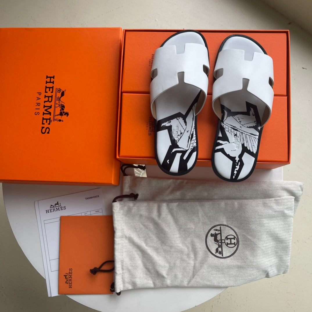 HM Men's Chypre Slide White Epsom Calfskin 538612