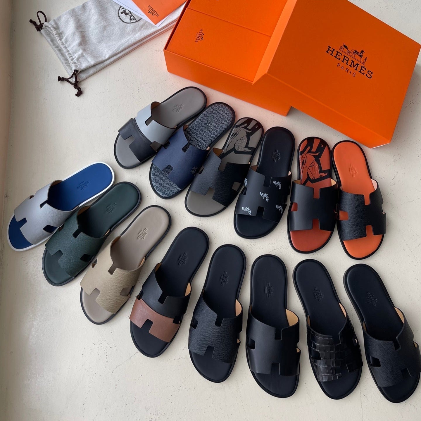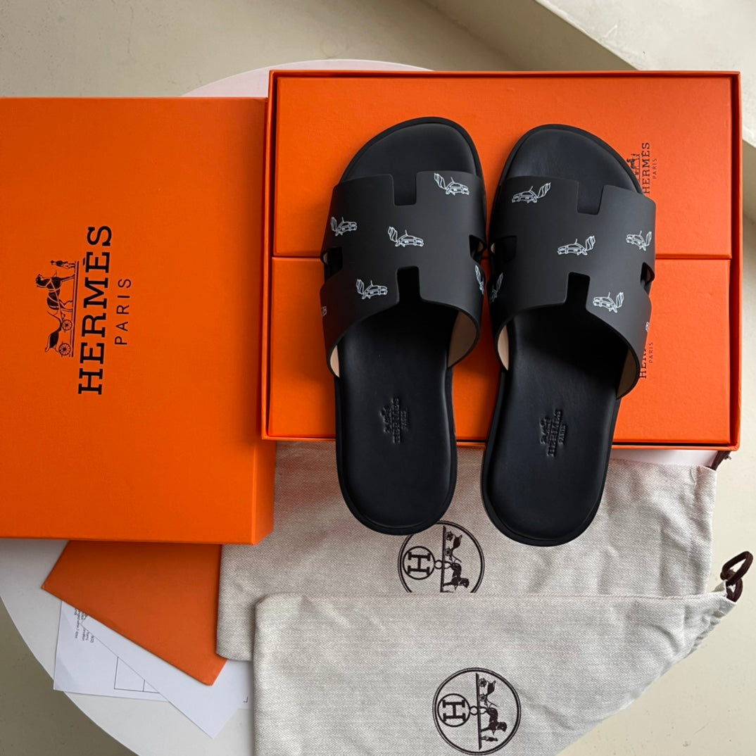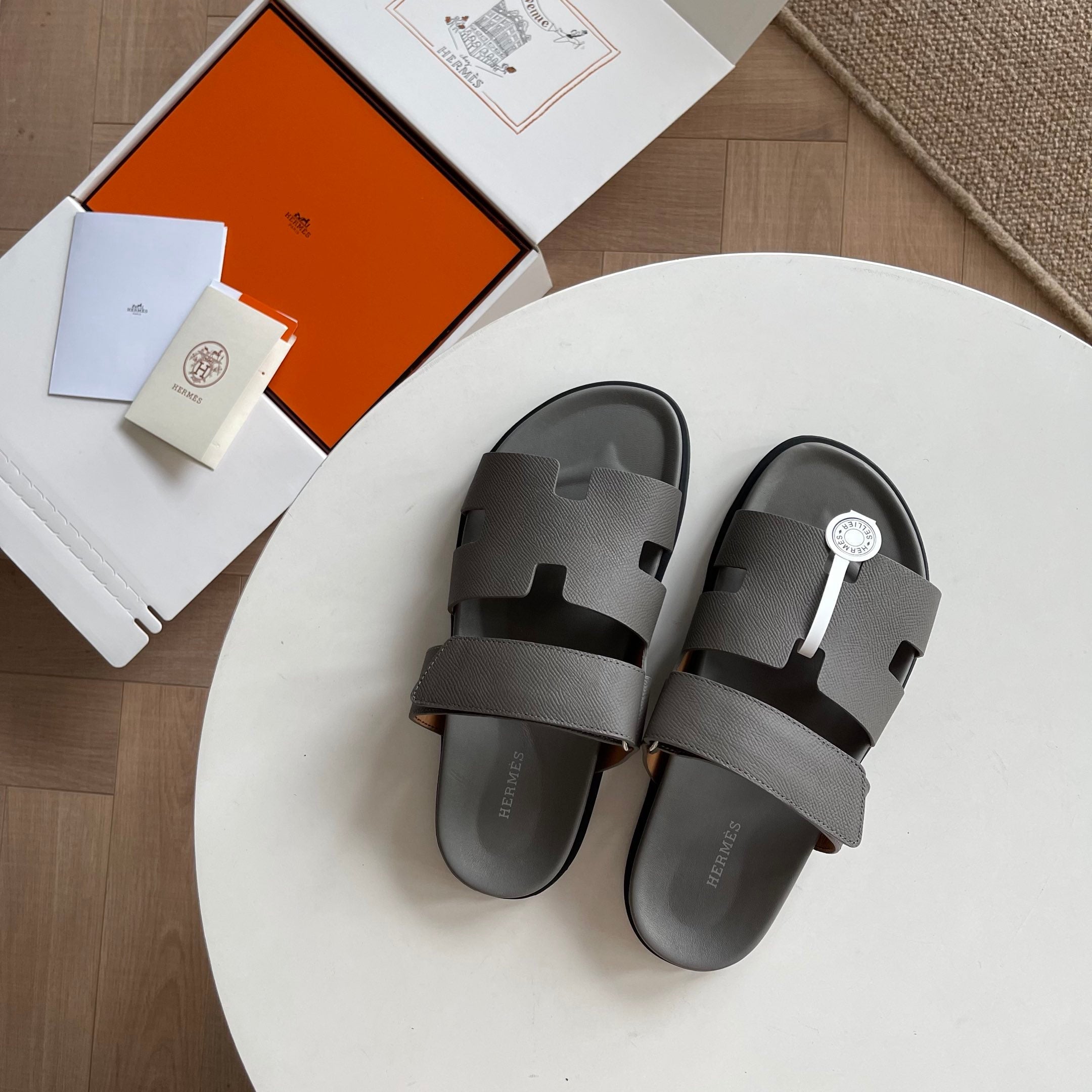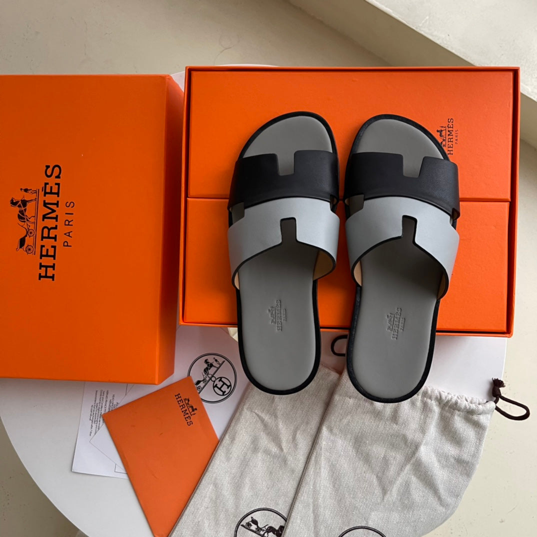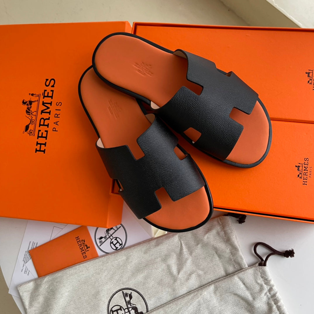 HM Men's Chypre Slide Black Grey Cowhide 540211