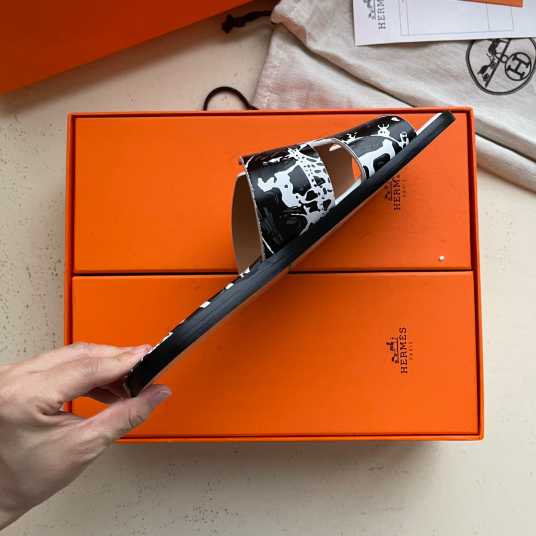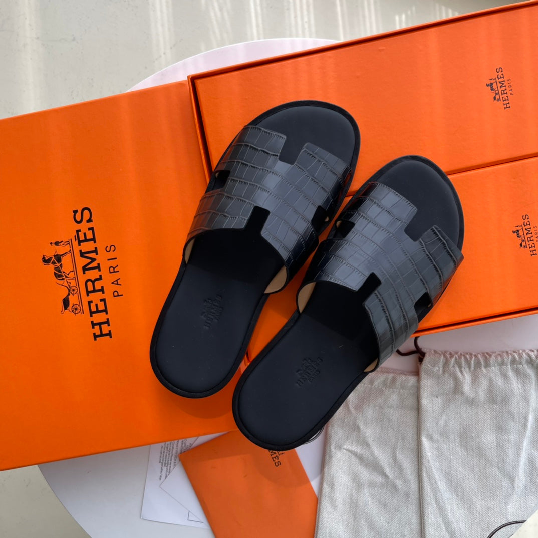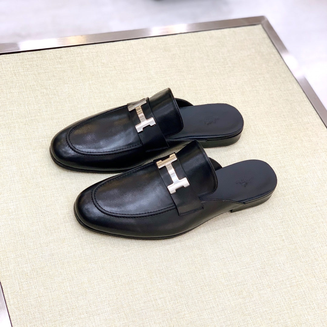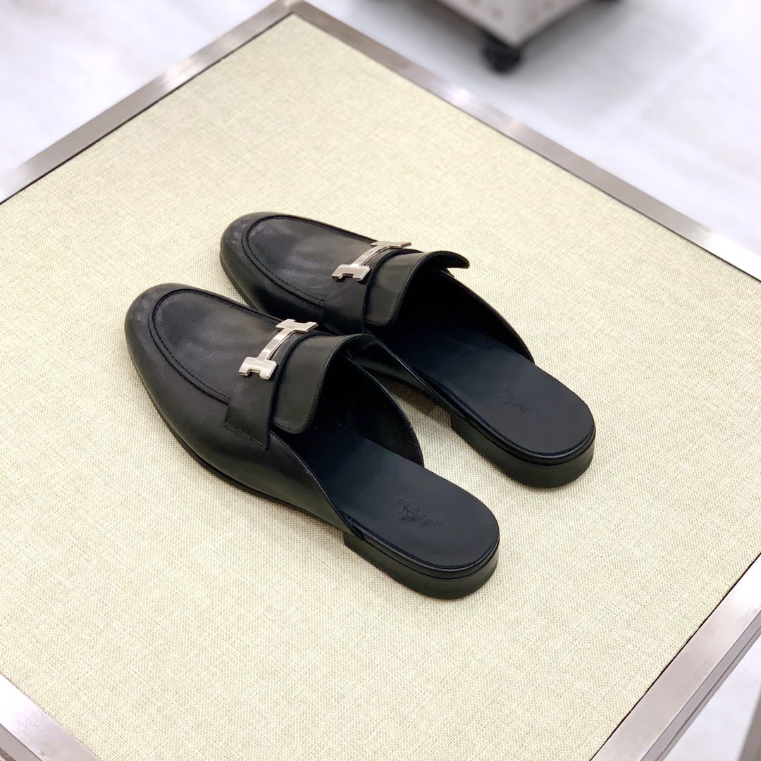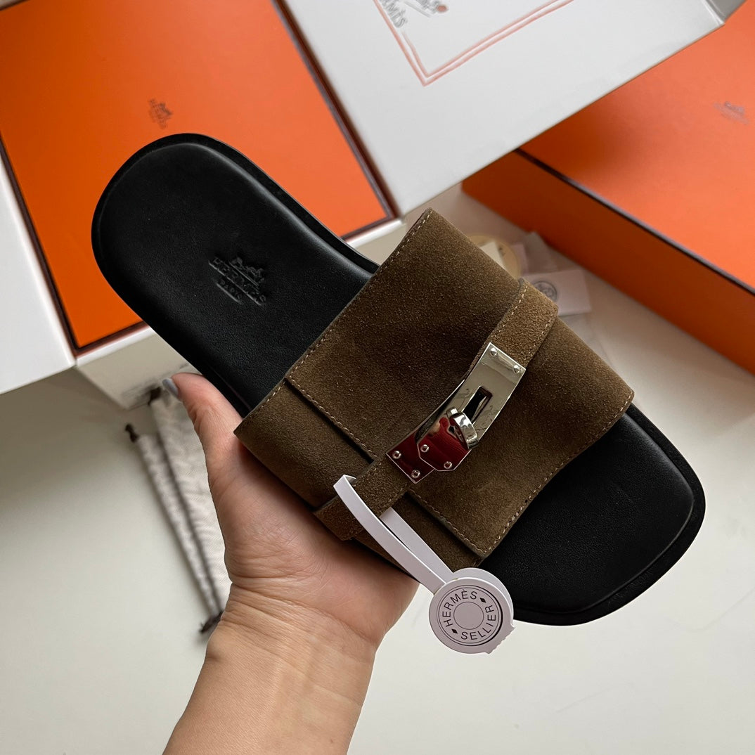 HM Men's Chypre Slide Black Grey Cowhide 540211
