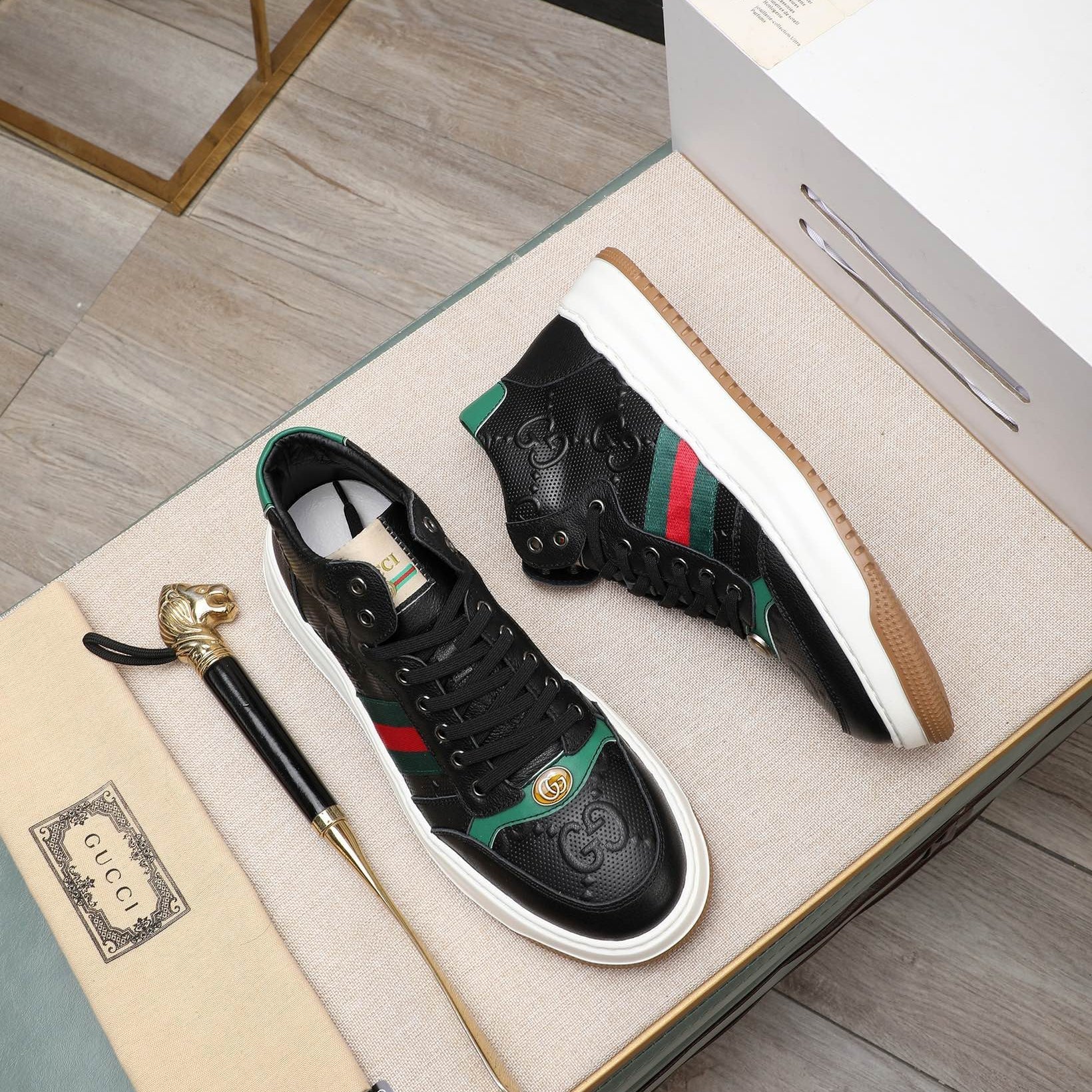 GG Men's Screener Sneaker Black Cowhide Canvas 534047