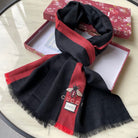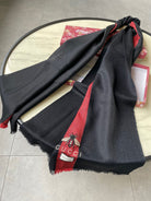 SCARF 200 CM IN BLACK MIX RED CASHMERE WITH EMBROIDERED BEE 407516