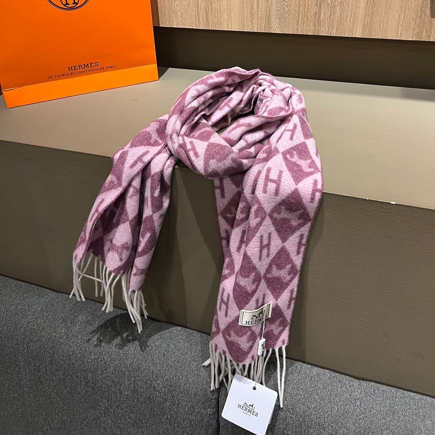 Scarf Cashmere 180 CM In Purple Pink Fine Wool 290423