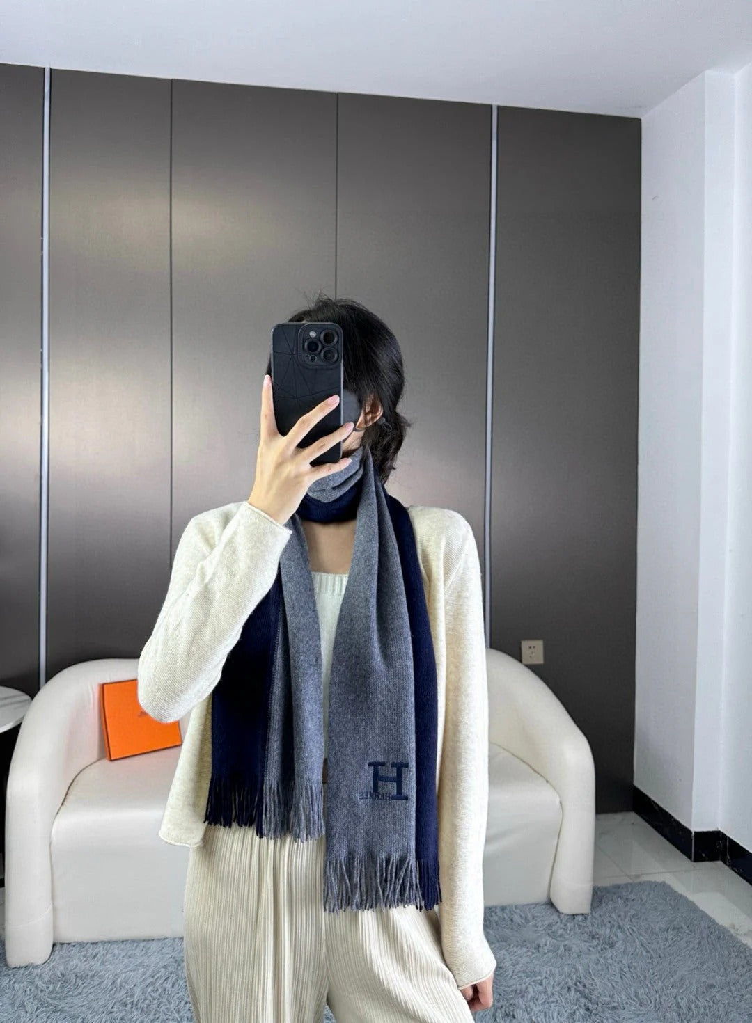 SCRAF 180 CM IN LIGHT PINK MIX KHAKI BROWN CASHMERE WITH EMBROIDERED LOGO