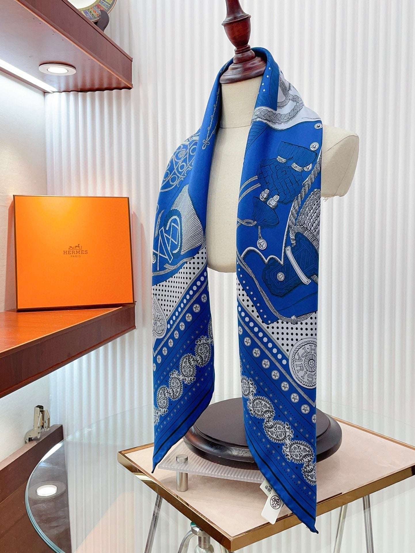 Zouaves Et Dragons Bandana Shawl 90 CM In Blue Colorful Silk Twill 262789