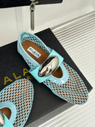 ALAIA MARY JANE SHOES IN SKY BLUE MESH WITH SILVER HARDWARE