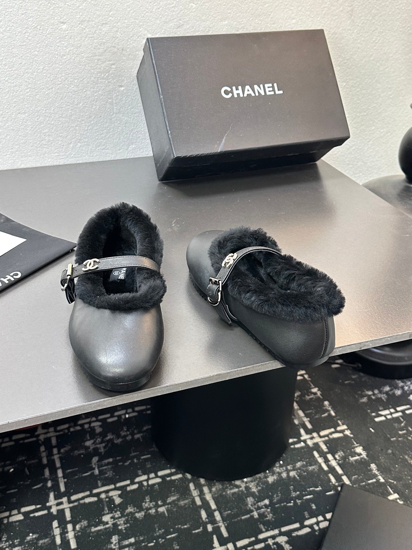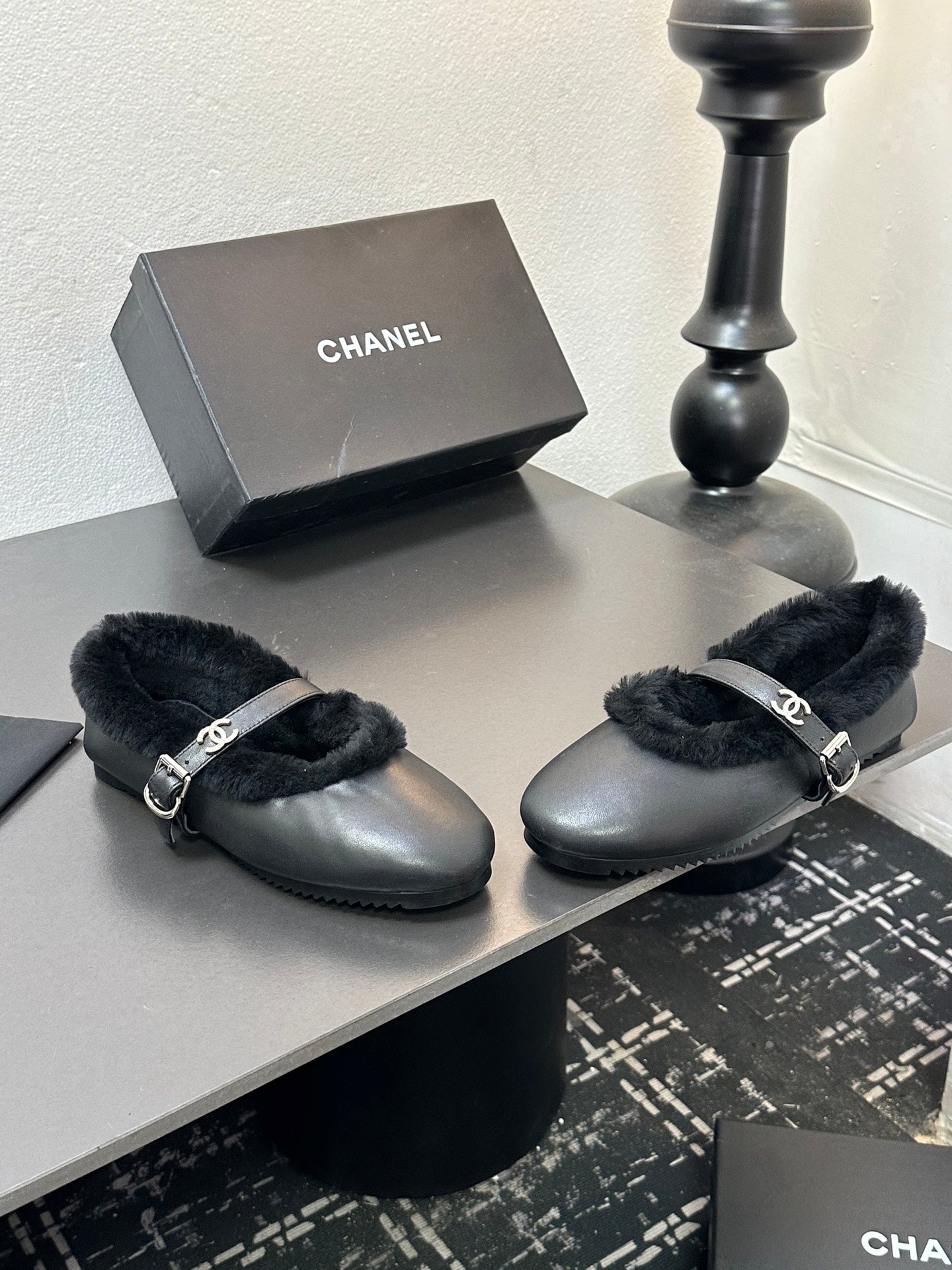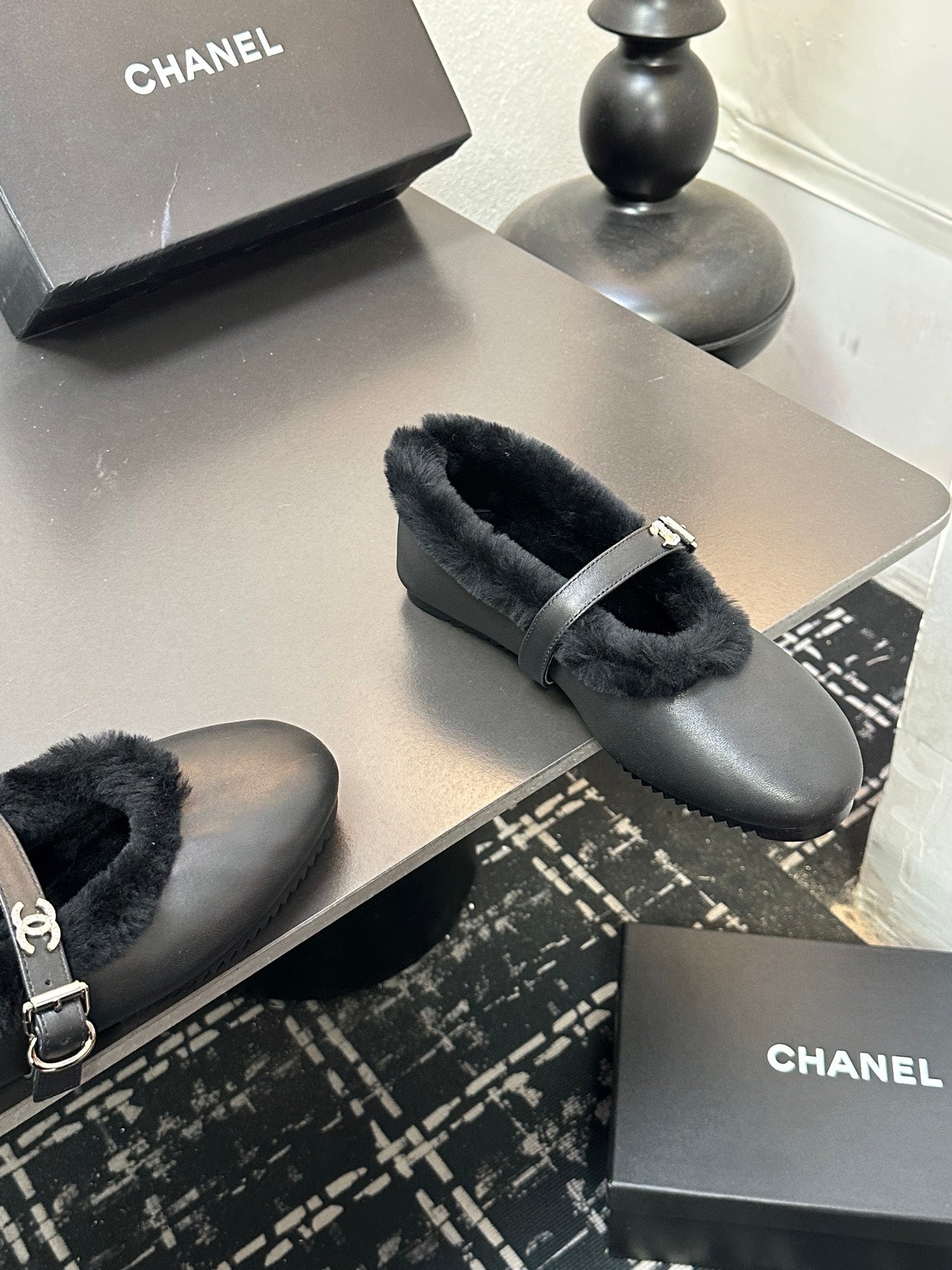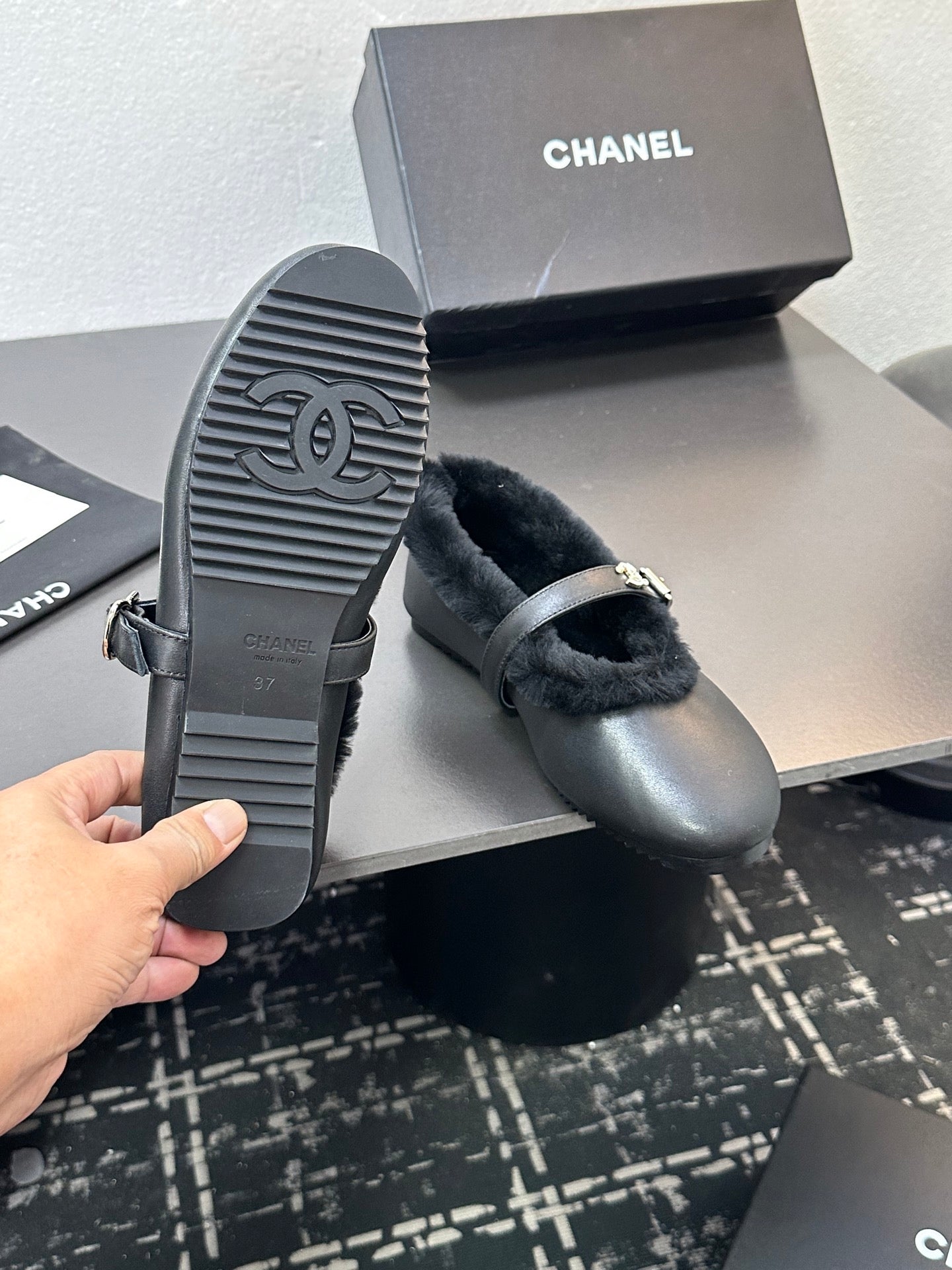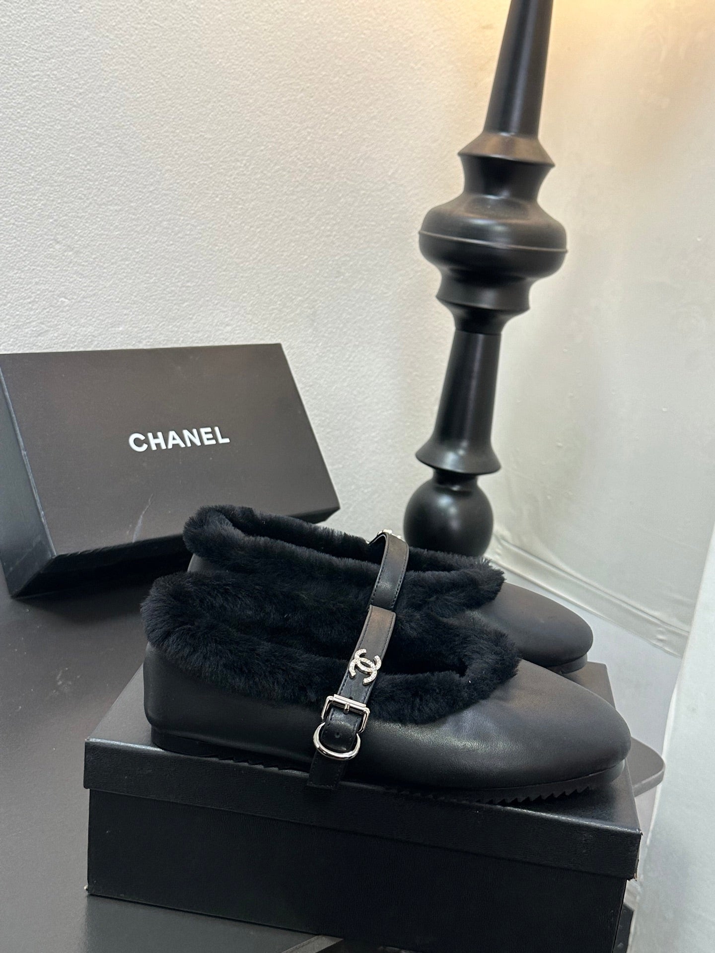 CC 2025 Puffer Ballet Flat With Strap Black Sheepskin Fur 529346