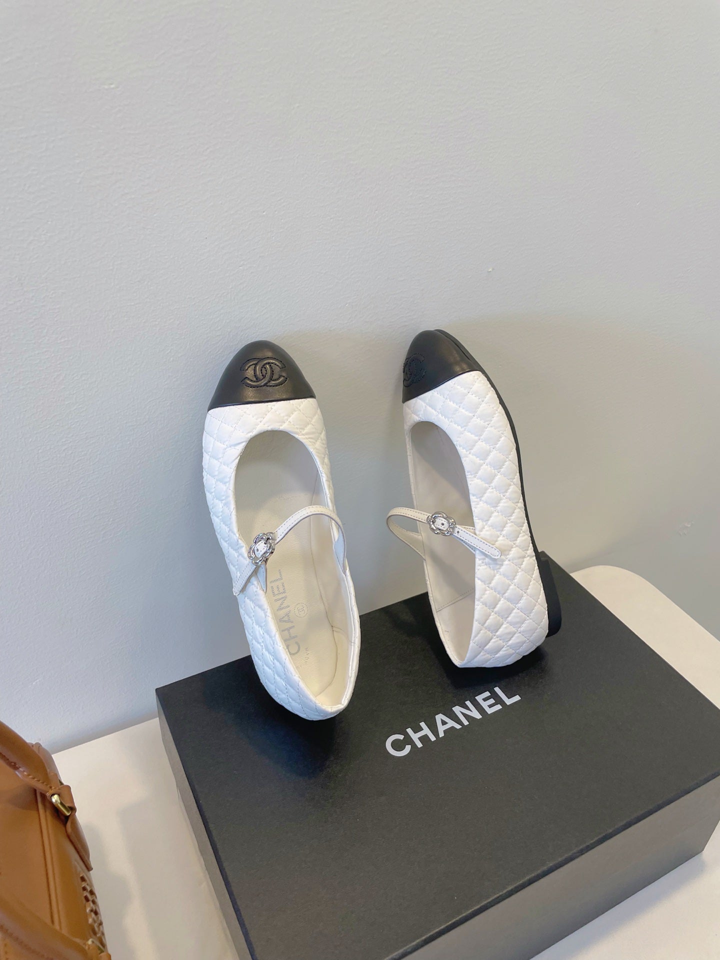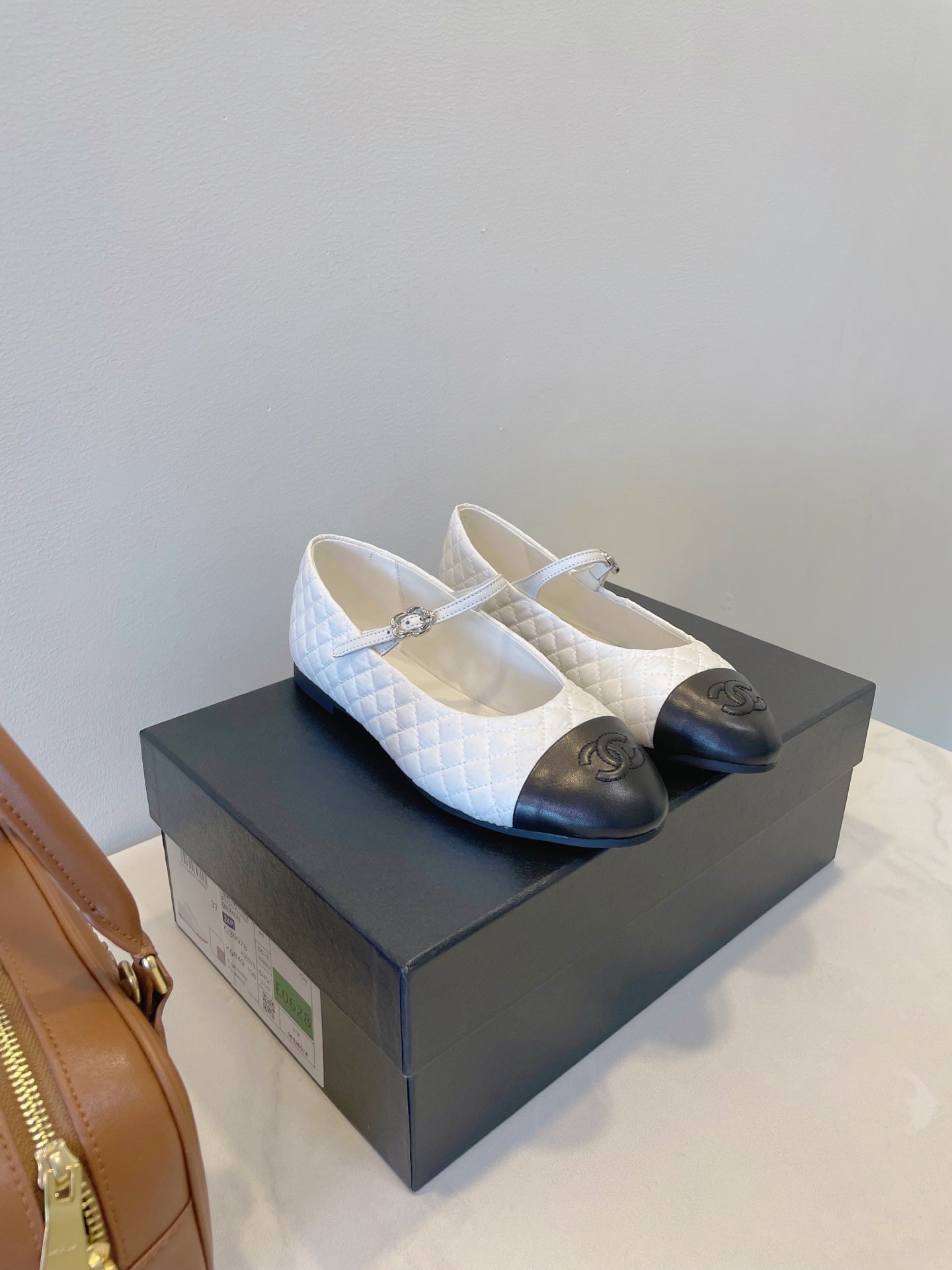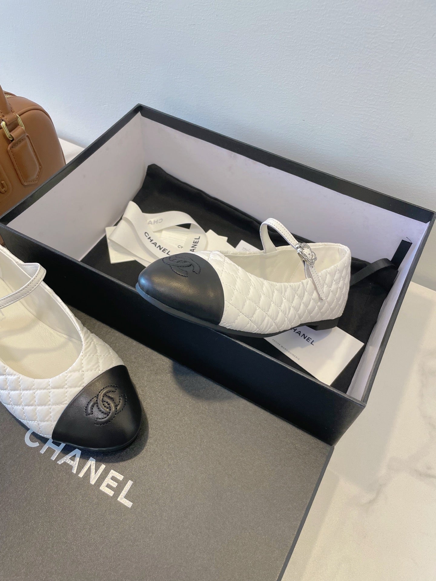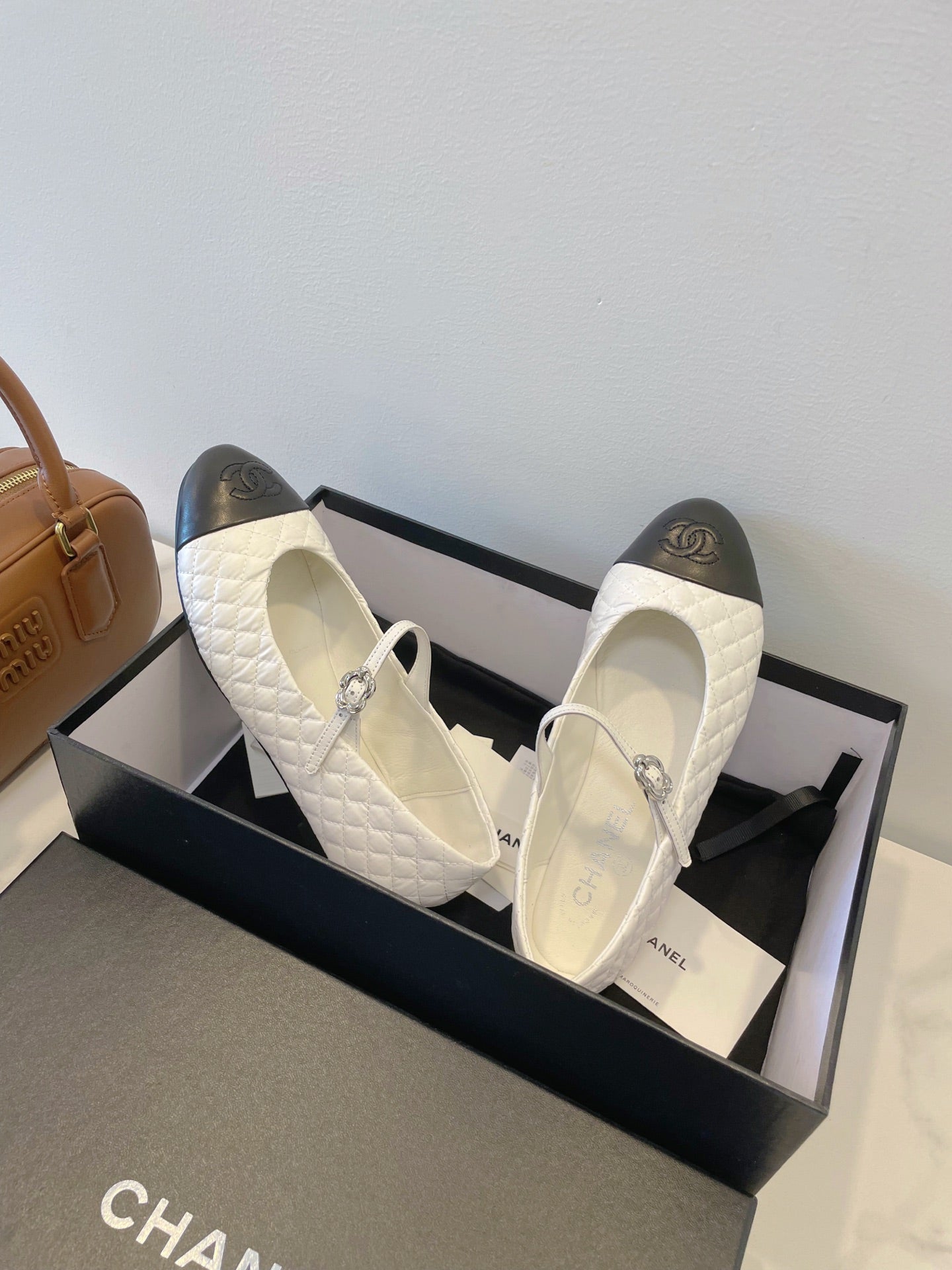 CC 25A Ballet Flat With Strap Quited White Black Sheepskin 530540