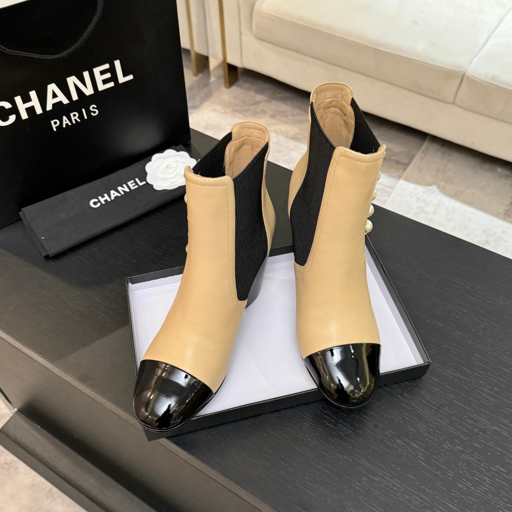 CC 25K FW Ankle Boots With Pearl 90mm Beige Sheepskin 528385