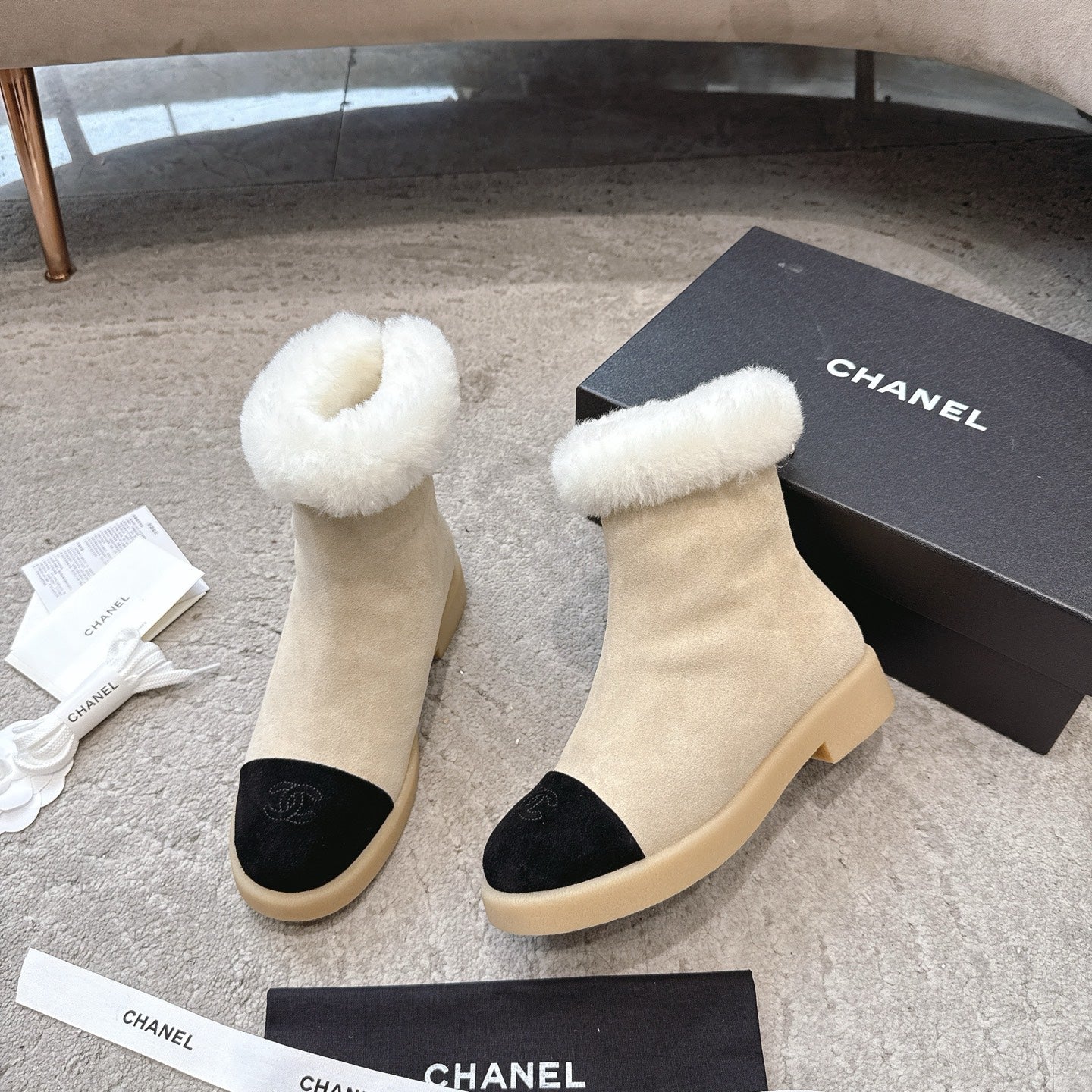 CC 25K Snow Boots 30mm Black Beige Wool Suede 527625