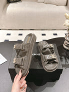 cc 25p logo with pearl mule sandal dark grey leather 237581