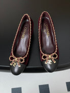 CC 25S 60mm Chain Bow Single Pumps Burgundy Velvet Black Sheepskin 247661