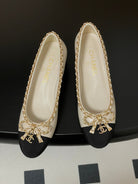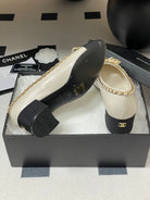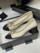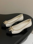 CC 25S 60mm Chain Bow Single Pumps White Sheepskin Black Grosgrain 247663