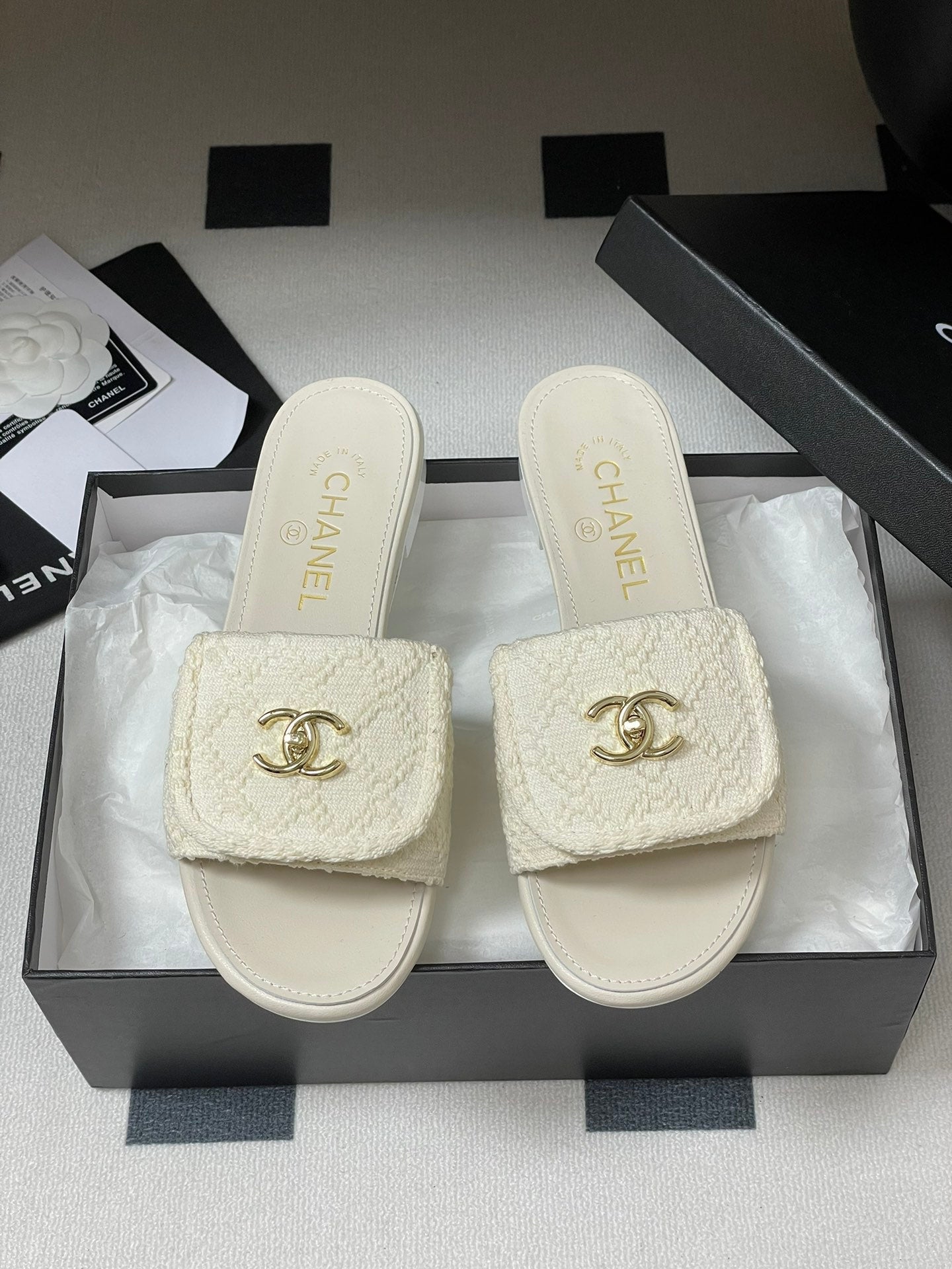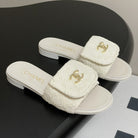 CC 25S Buckle Bag Mule White Fabric and Sheepskin 247598