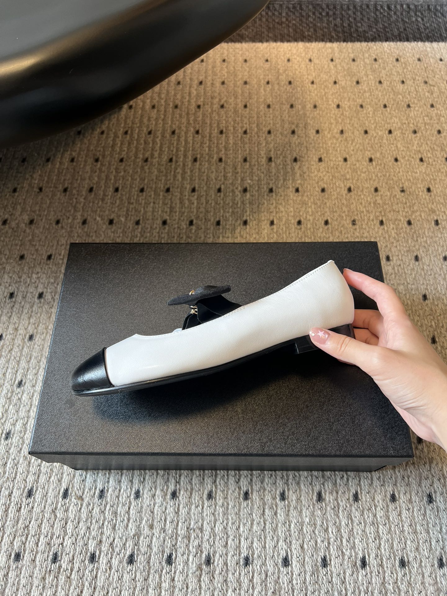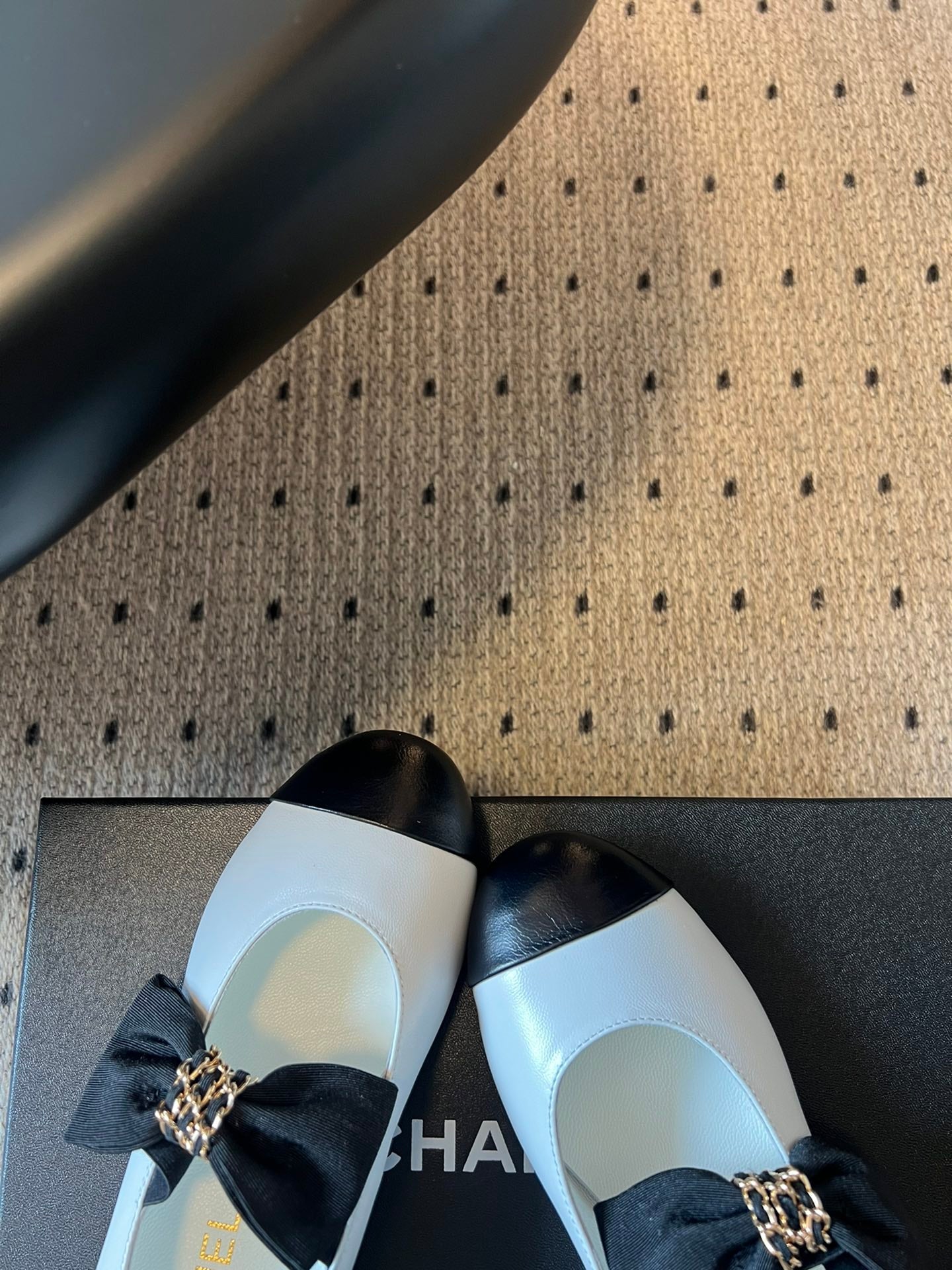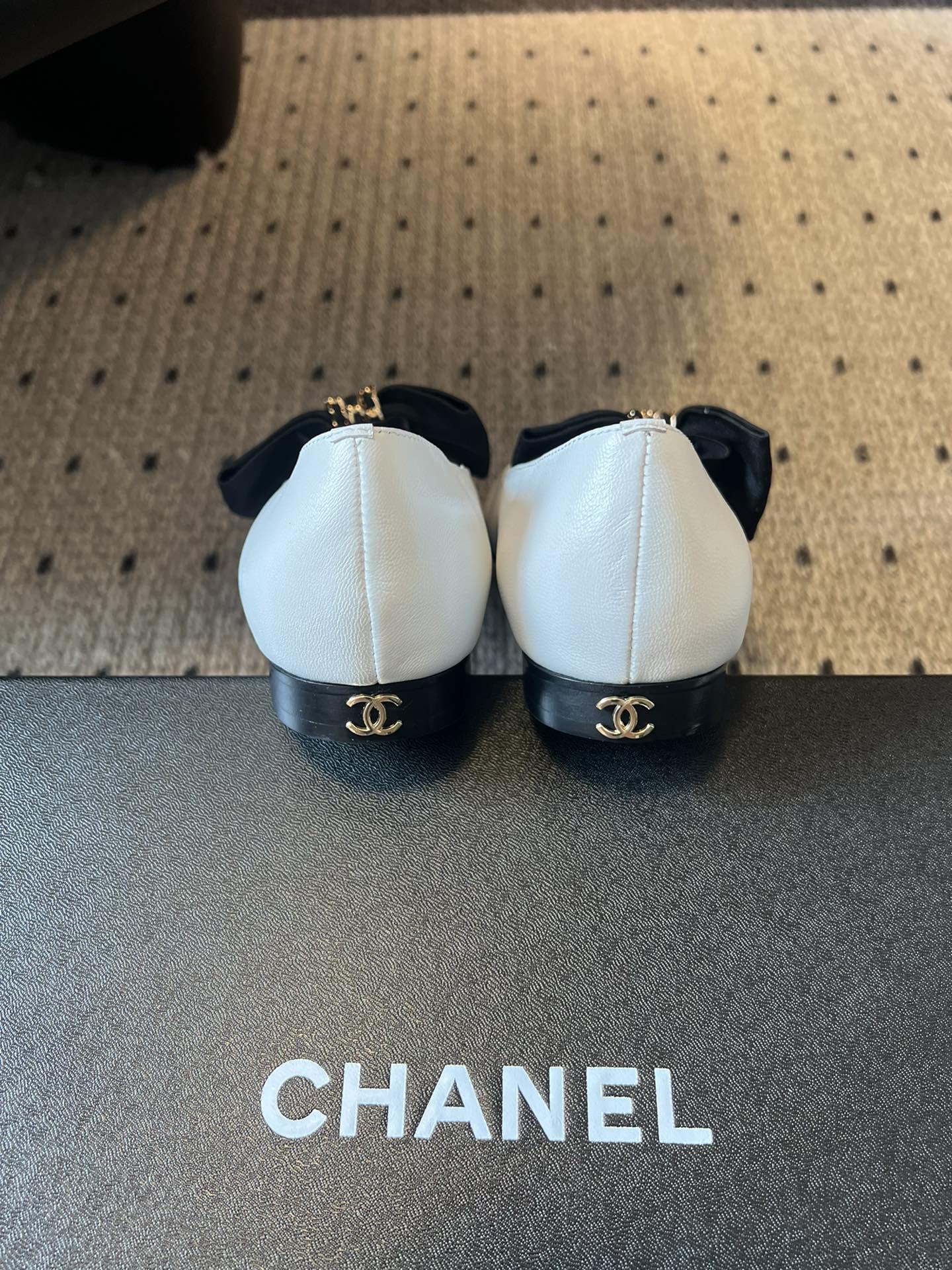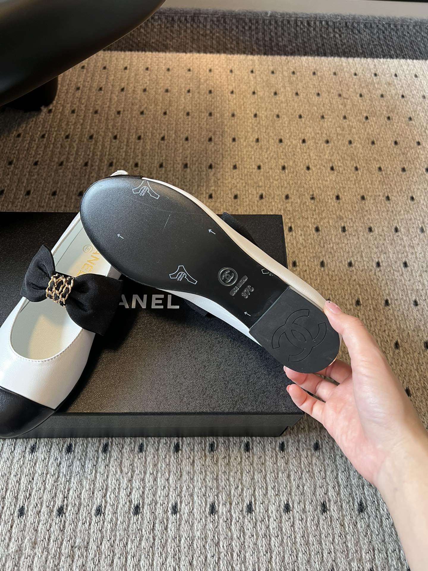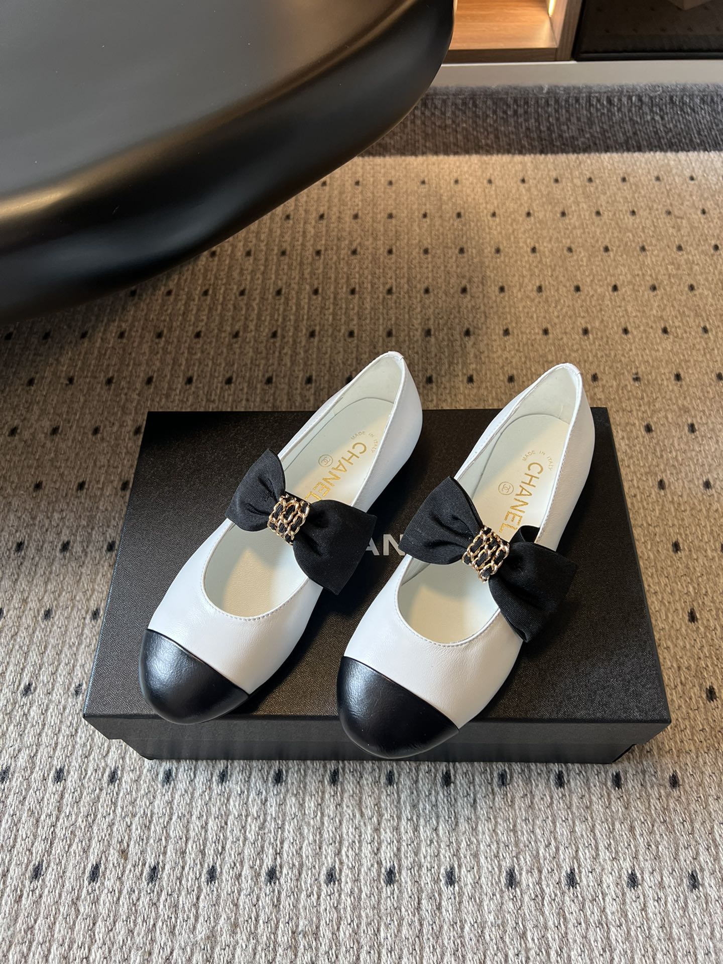 CC 25SS Bow Flat Shoes Black White Sheepskin Frabic 530674