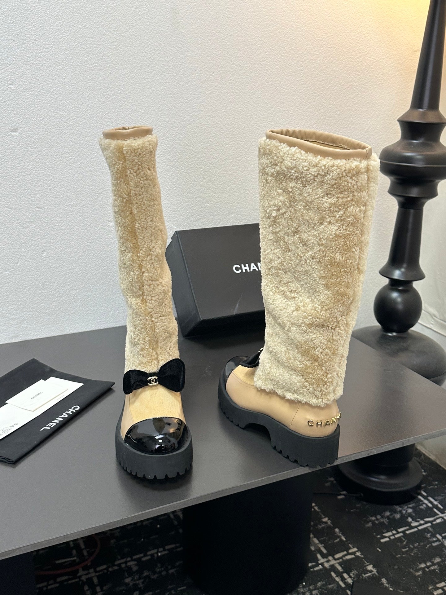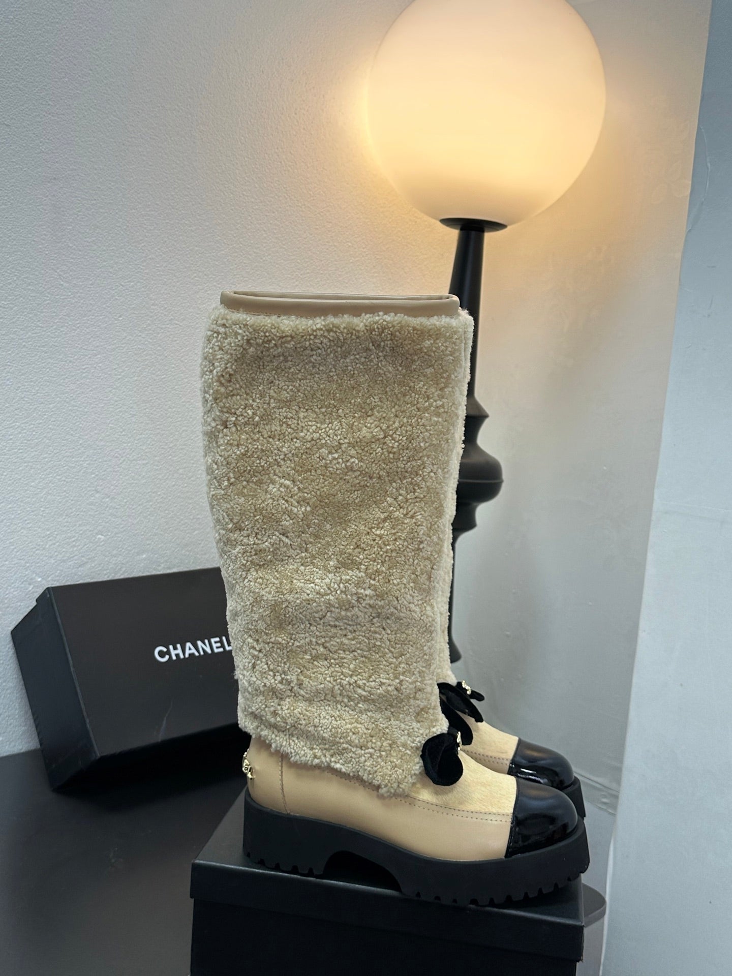 CC Coco Neige 2025/26 High Boots Beige Shearling Lambskin Patent Leather 529338