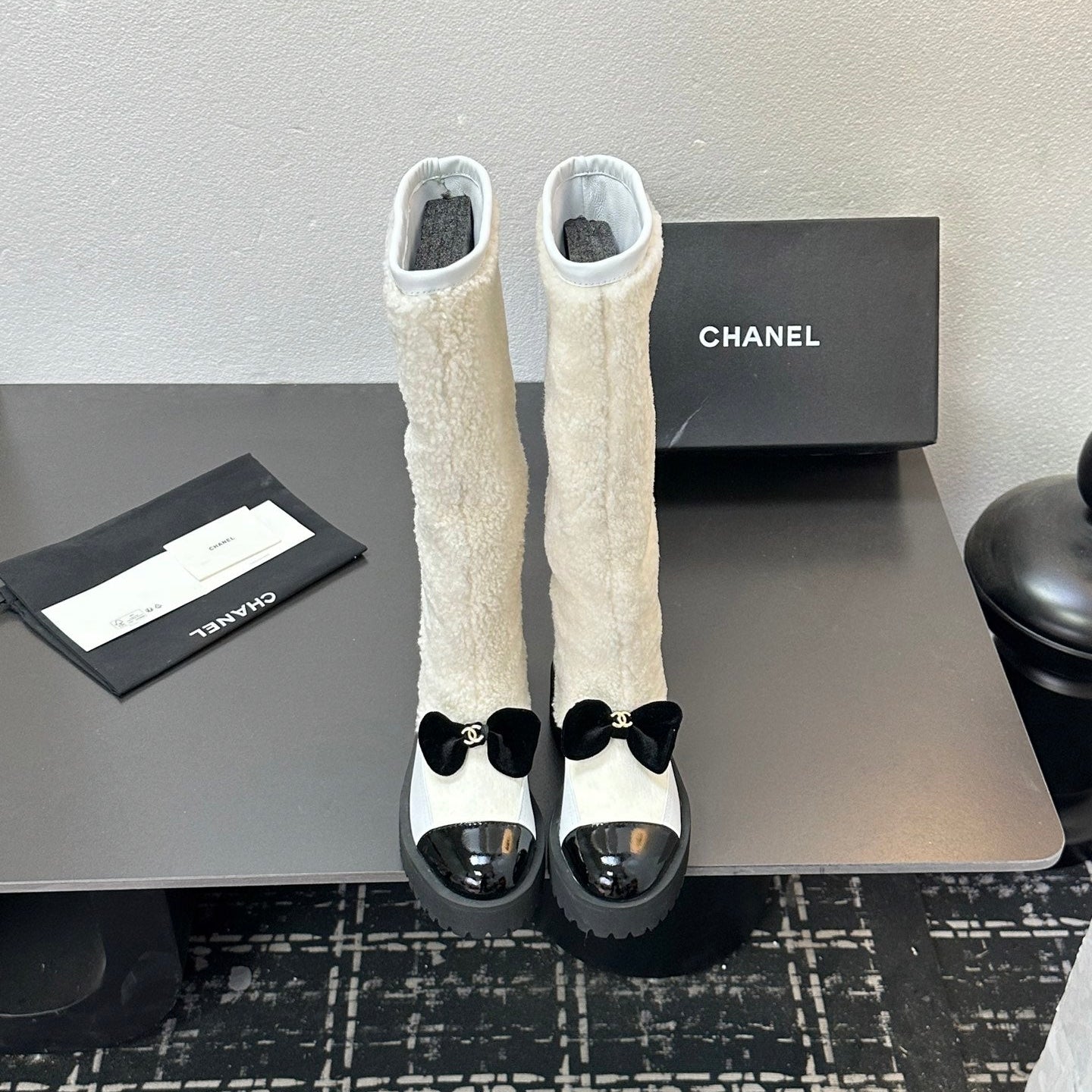 CC Coco Neige 2025/26 High Boots Black White Shearling Lambskin Patent Leather 529340
