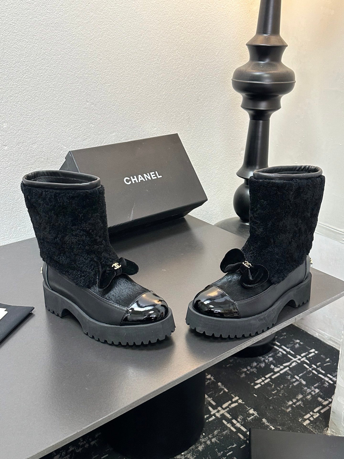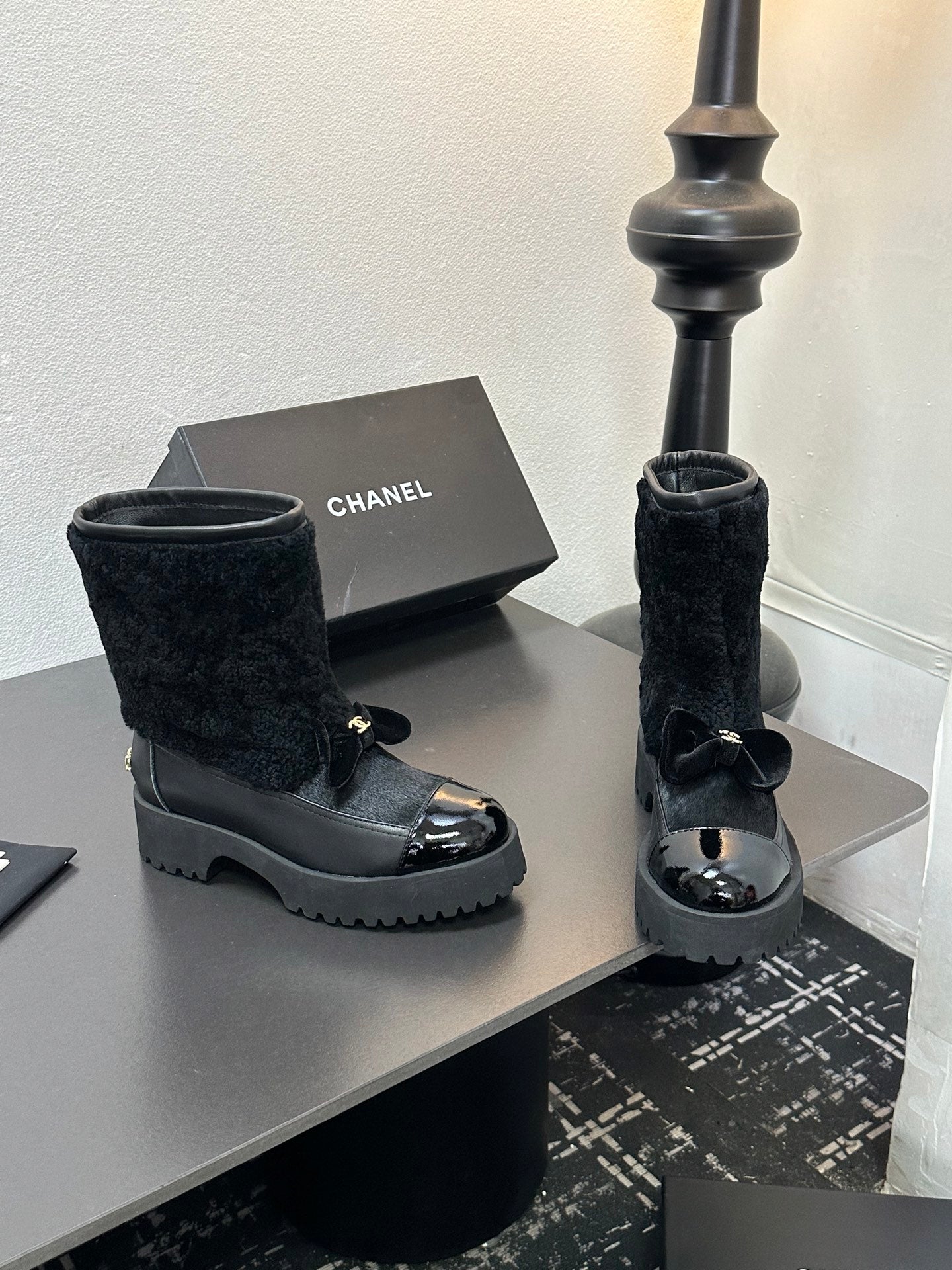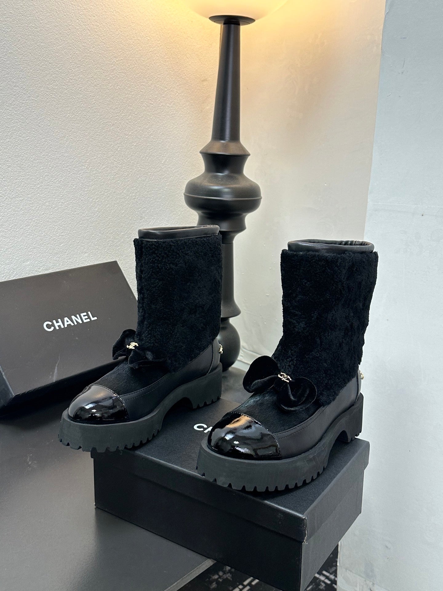 CC Coco Neige 2025/26 Low-cut Boots Black Shearling Lambskin Patent Leather 529343
