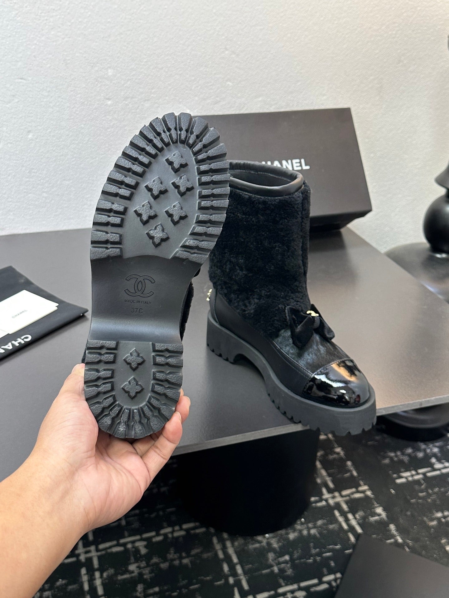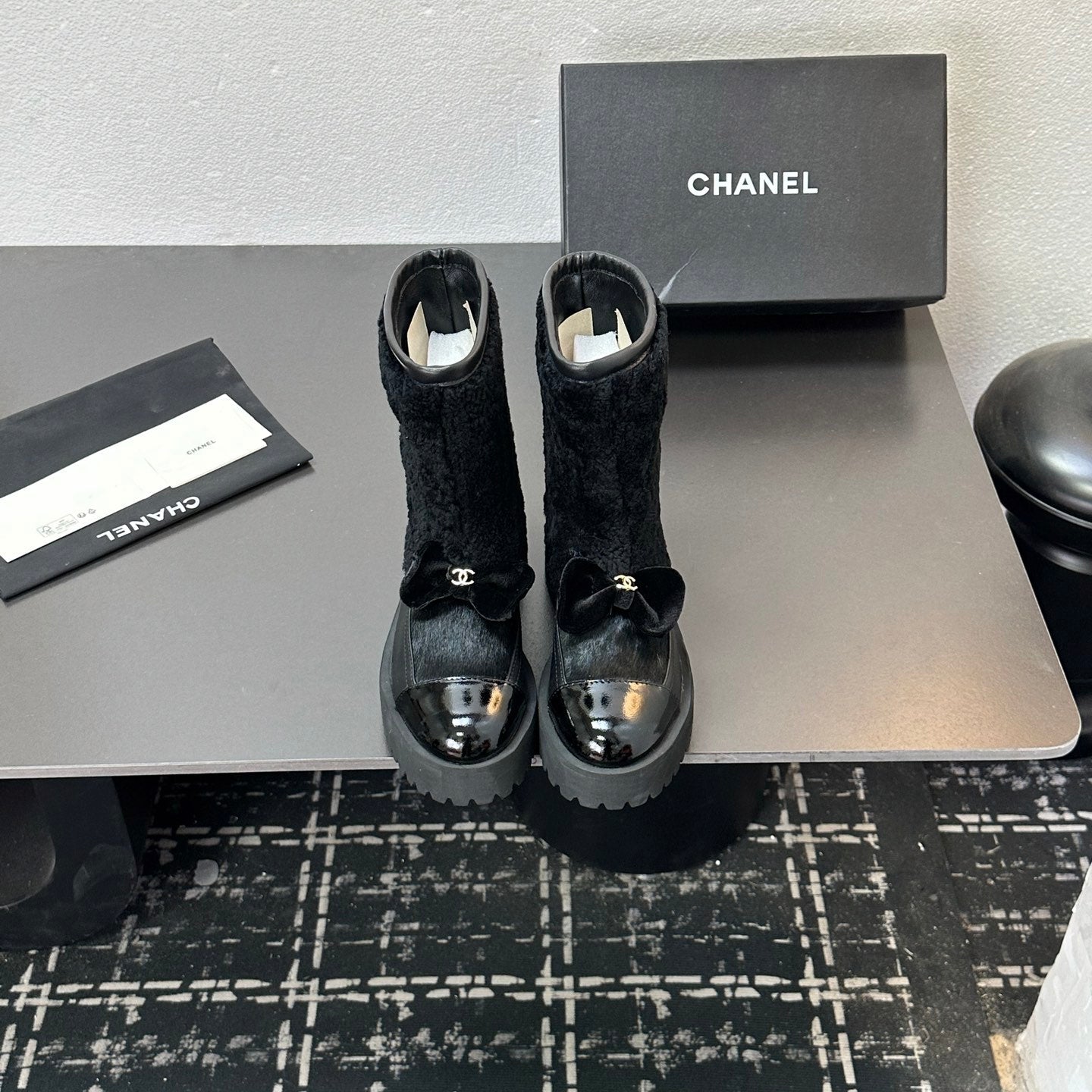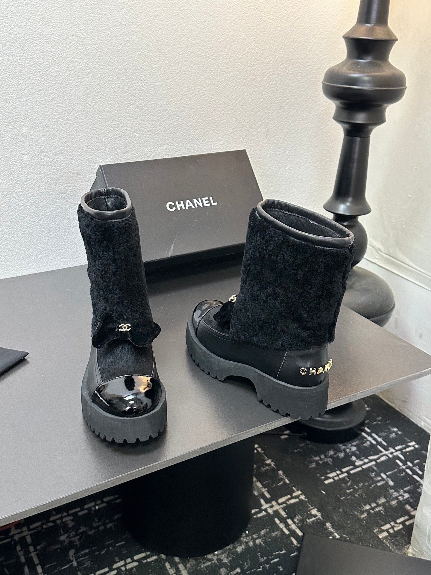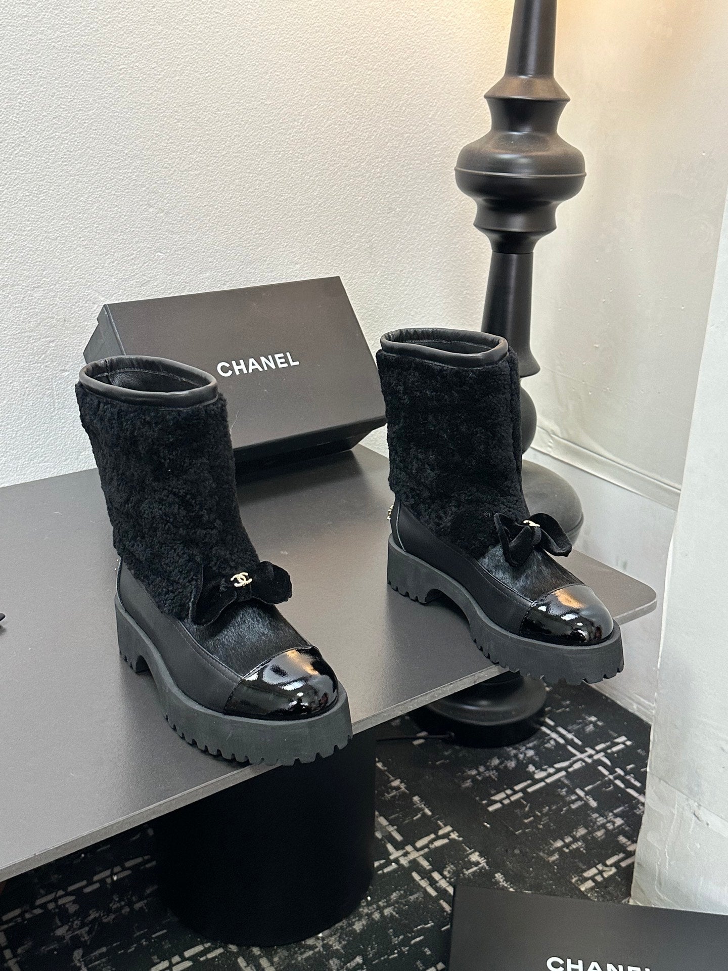 CC Coco Neige 2025/26 Low-cut Boots Black Shearling Lambskin Patent Leather 529343